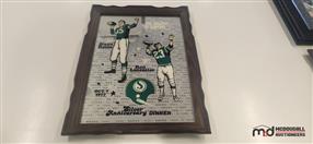 In this compilation of football gems are various 'Plaza of Honor' plaques, commemorating the team's Grey Cup winning years, to go along with newspaper clippings, pictures, books and pins honoring the Roughriders greatest players and eras in the team's history. Grab a piece of that history by bidding on and acquiring these lots by Dec. 16th. As evidenced by our very recent Grey Cup victory, this is a history that will continue to write new chapters for years to come.