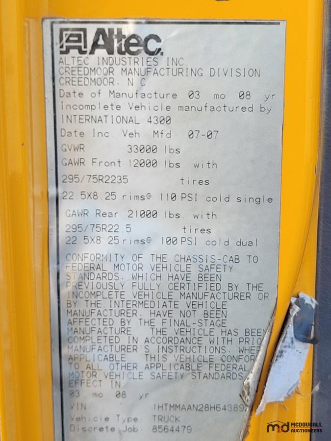 It is the purchaser's sole responsibility to ascertain, confirm, research, inspect, and/or investigate the unit prior to bidding. Once the unit has been removed from McDougall Auction's sale location, the purchaser accepts the unit "as is."