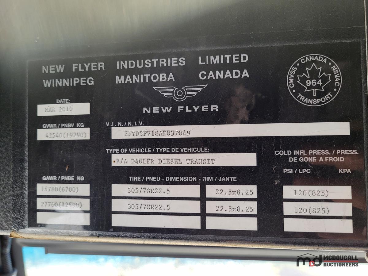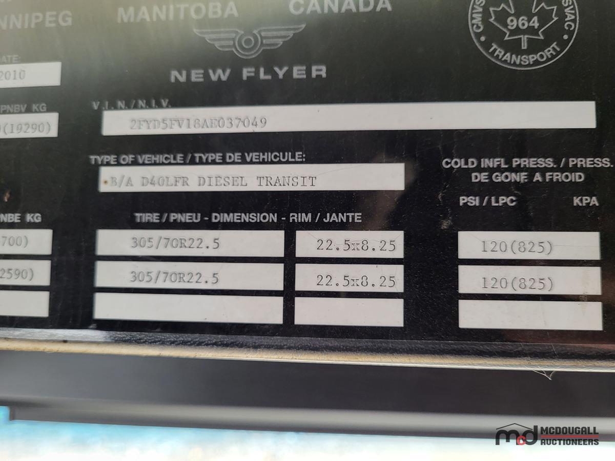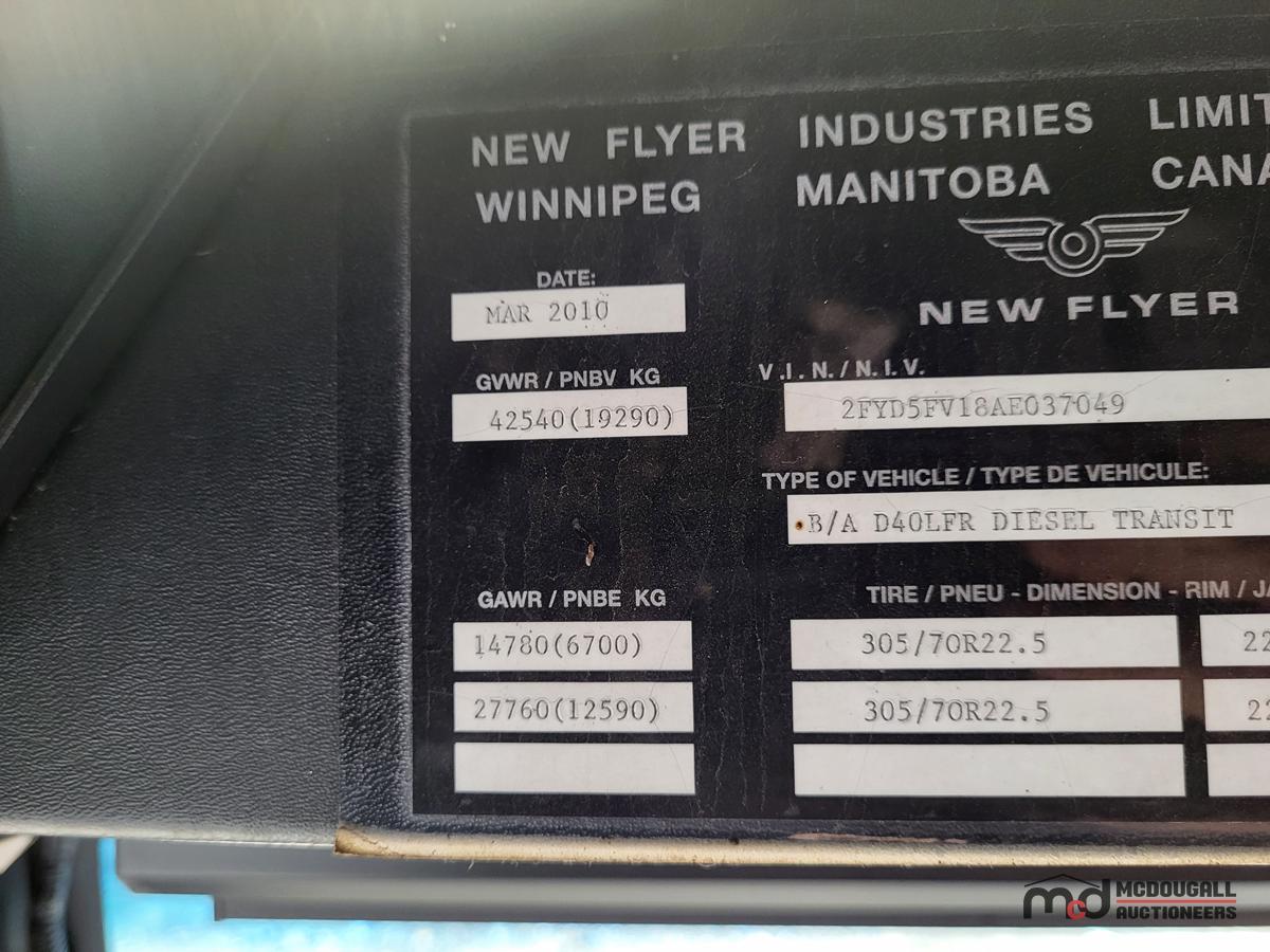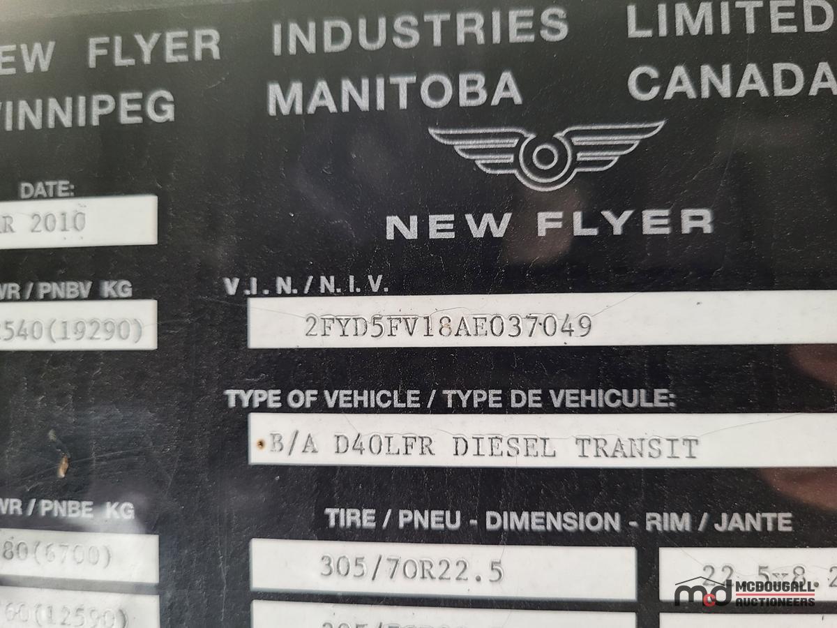 PARTS ONLY: 2010 New Flyer Transit Bus
