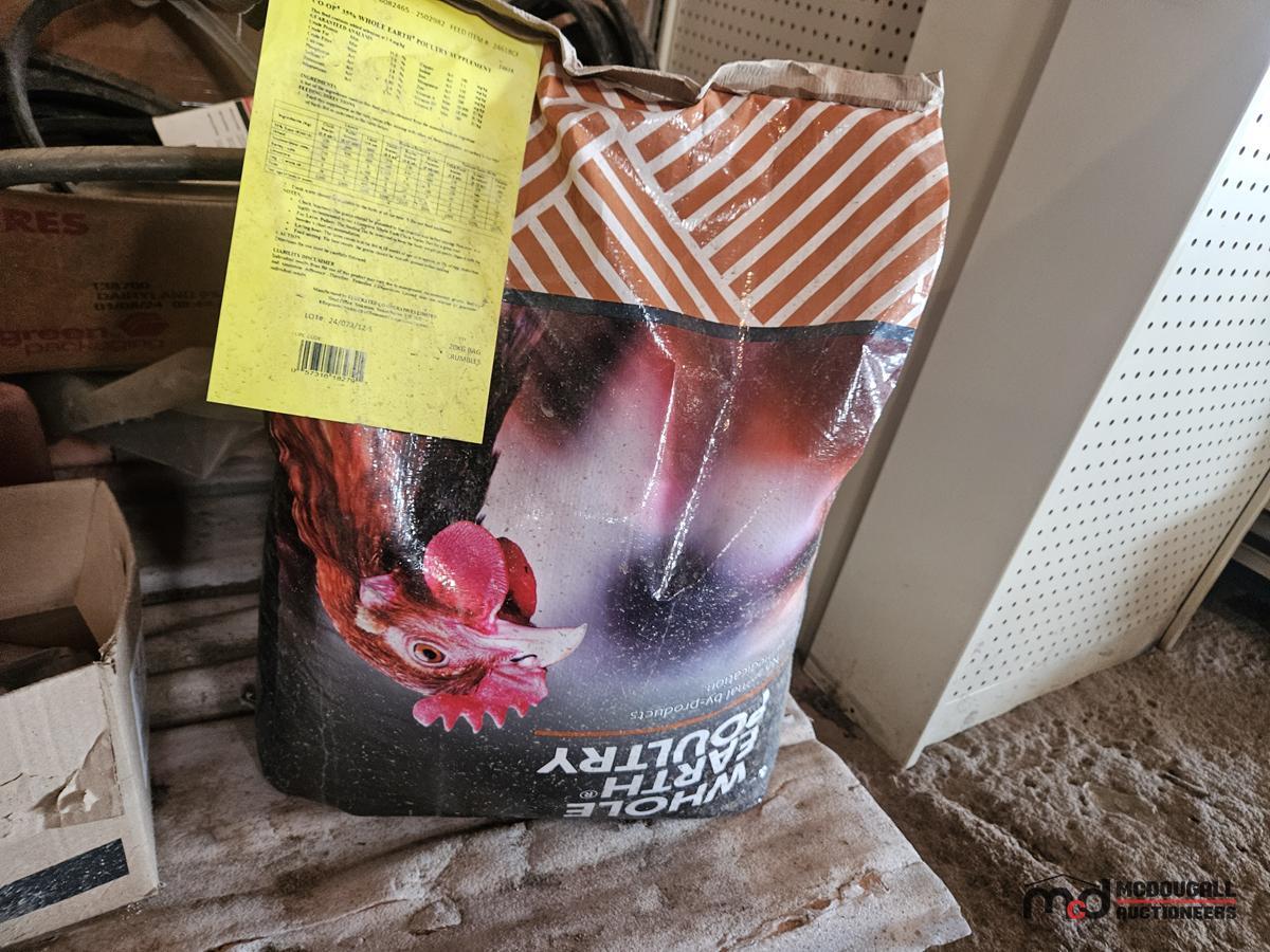 Pallet of Belts, Poultry Food, and More