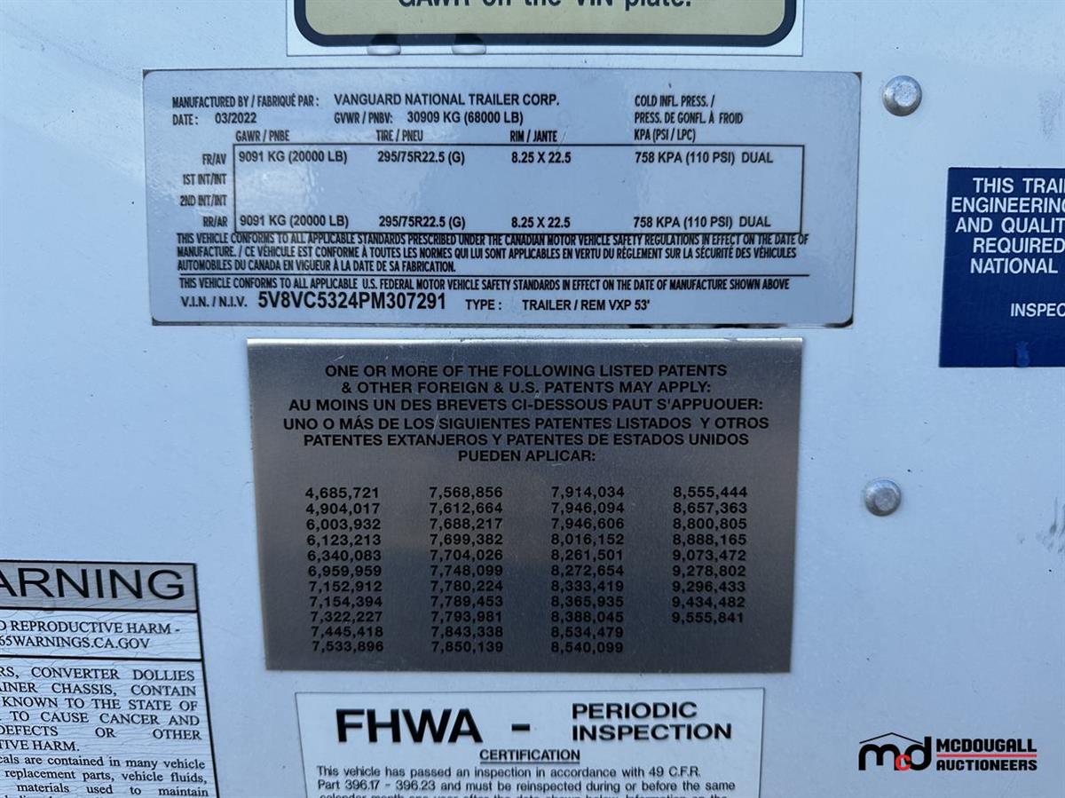 Model: 2023 Vanguard 53' T/A Dry Van Semi Trailer