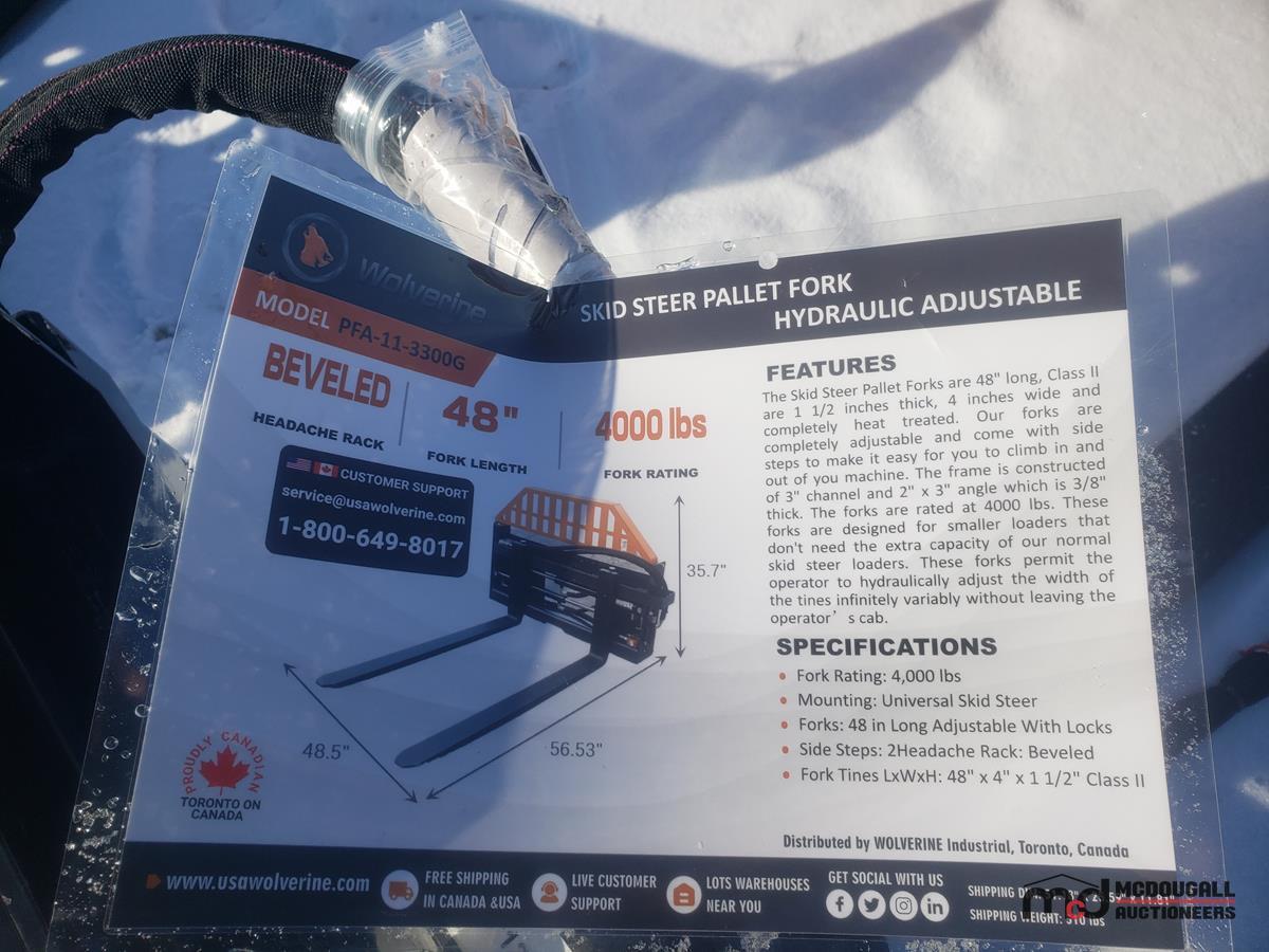 2025 Wolverine PFA-11-3300G Pallet Fork Hydraulic Adjustable Attachment
