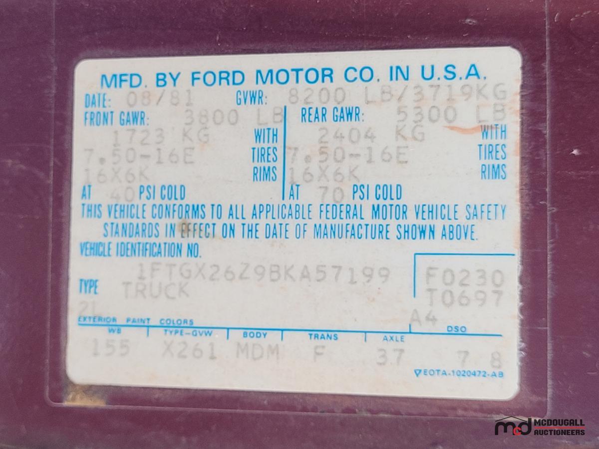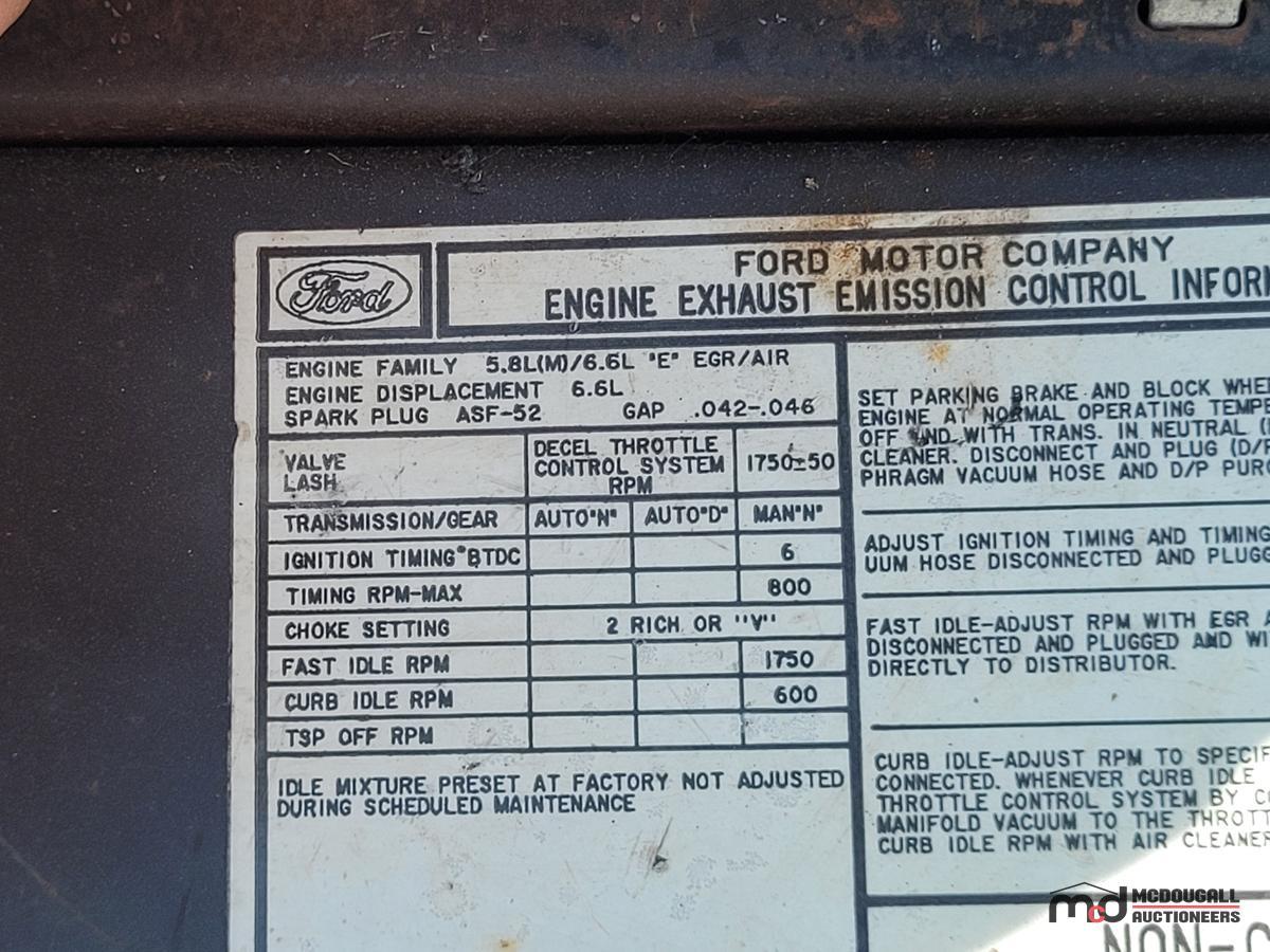There is no guarantee, representation, or warranty that the vehicle will start, run at idle, or regarding its current registration status at the time of pick-up from McDougall Auction's facility.