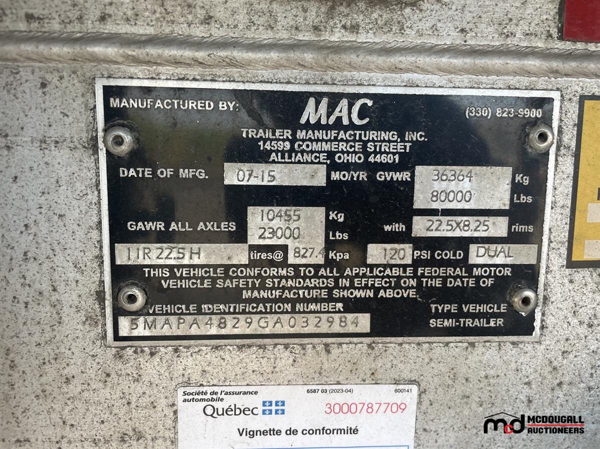Poids/Essieu : 23 000 lb