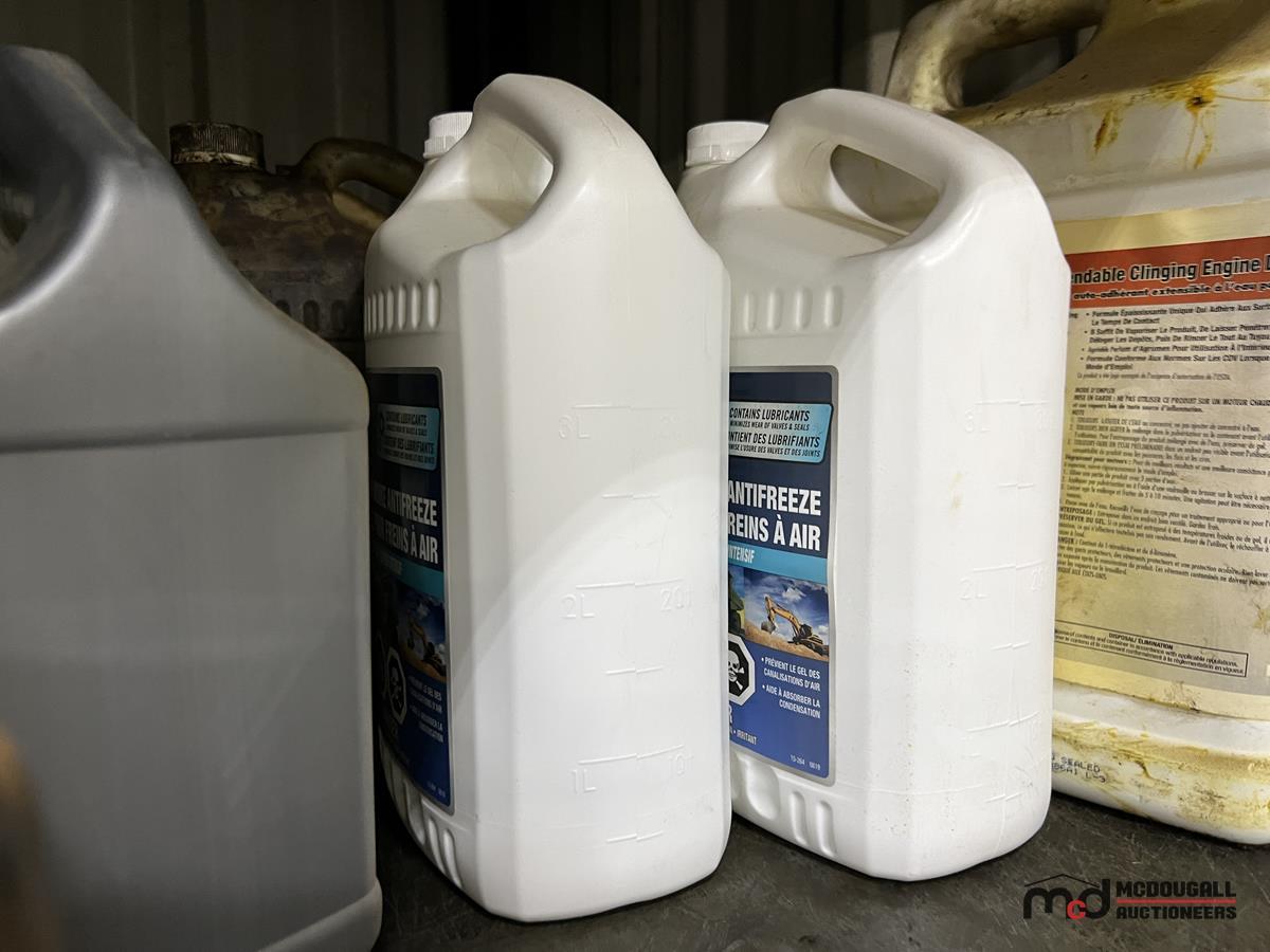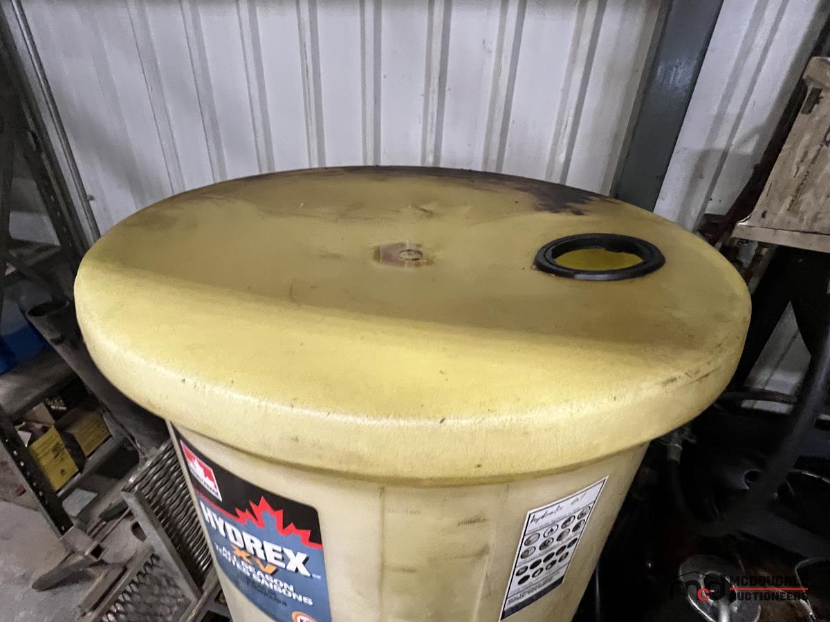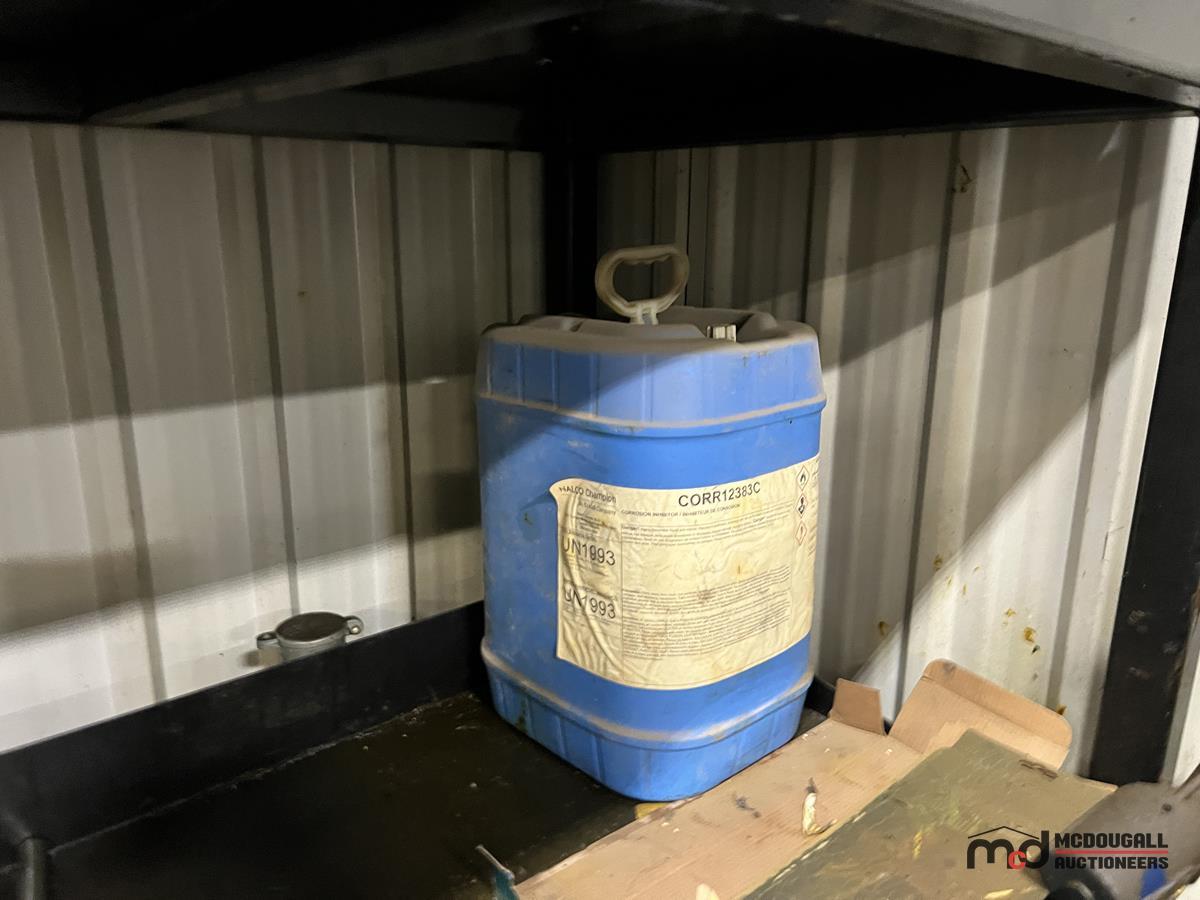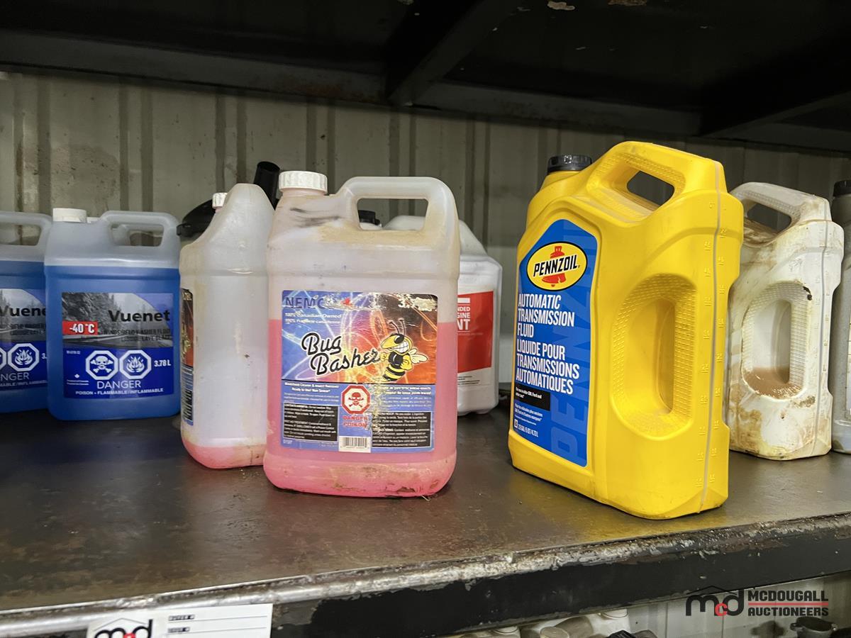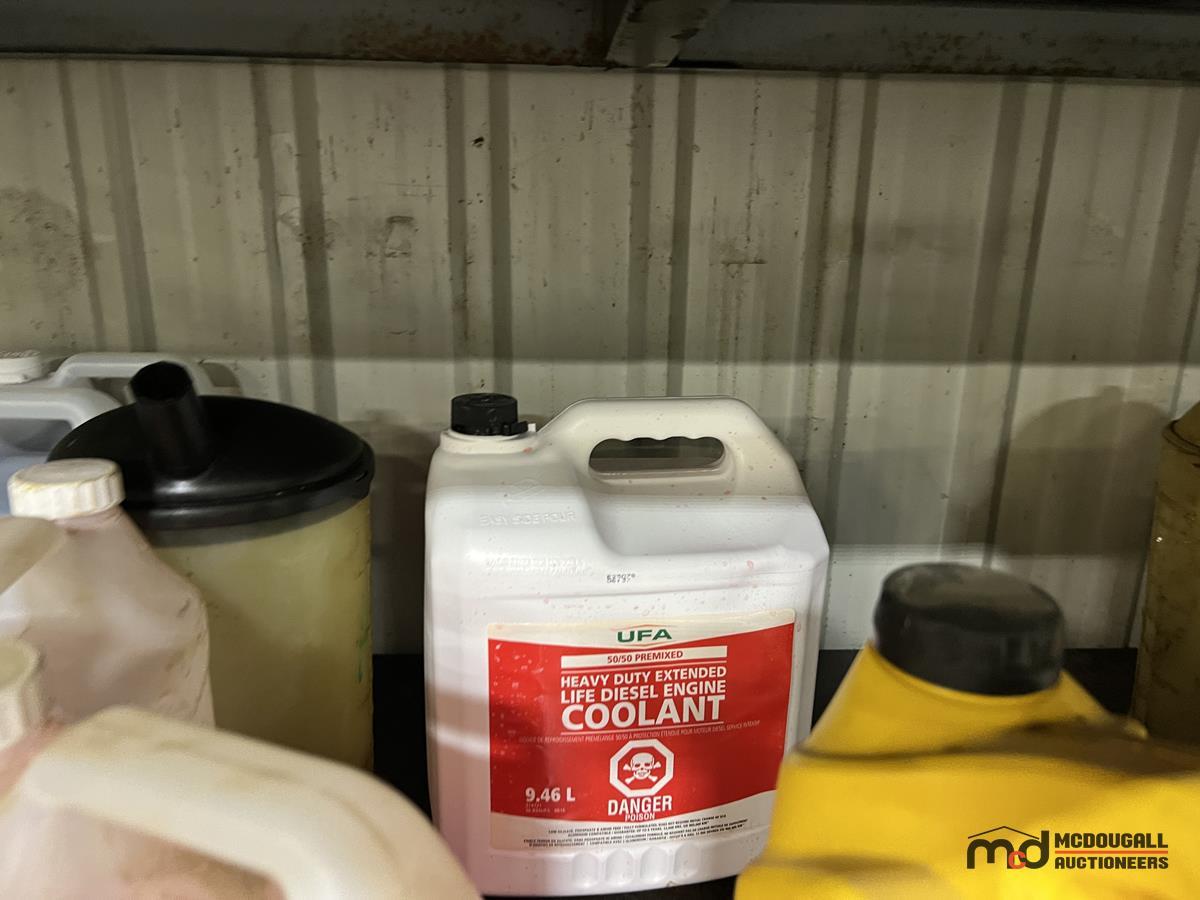 Square Steel Oil Tank w/ (2) Hose Reels, Nozzles, 140-Gallon Cylindrical Oil Tank & Assortment of Vehicle Fluids