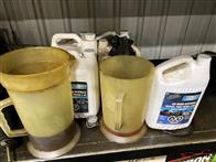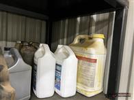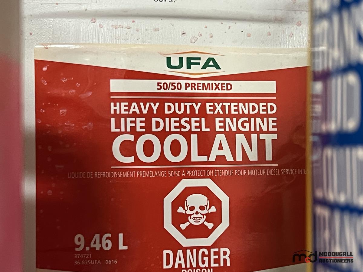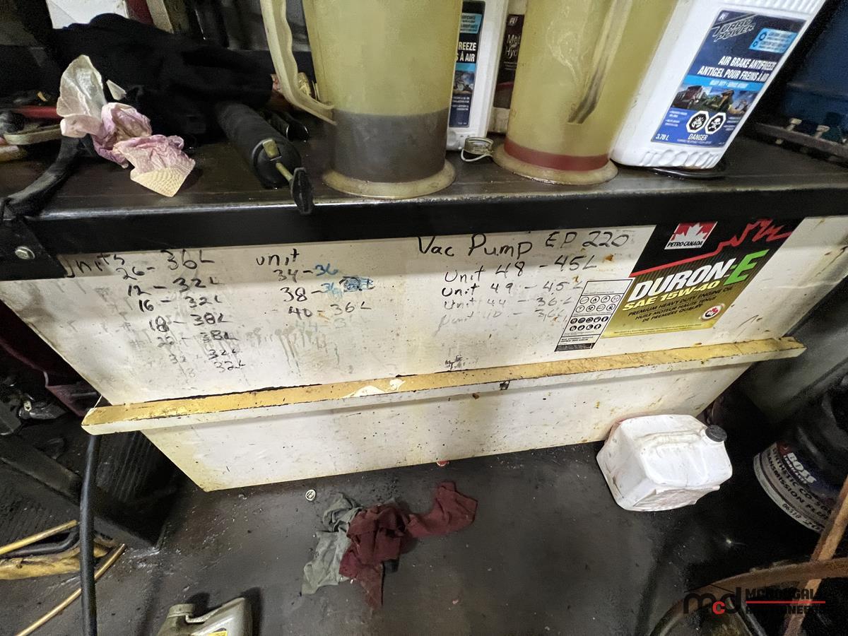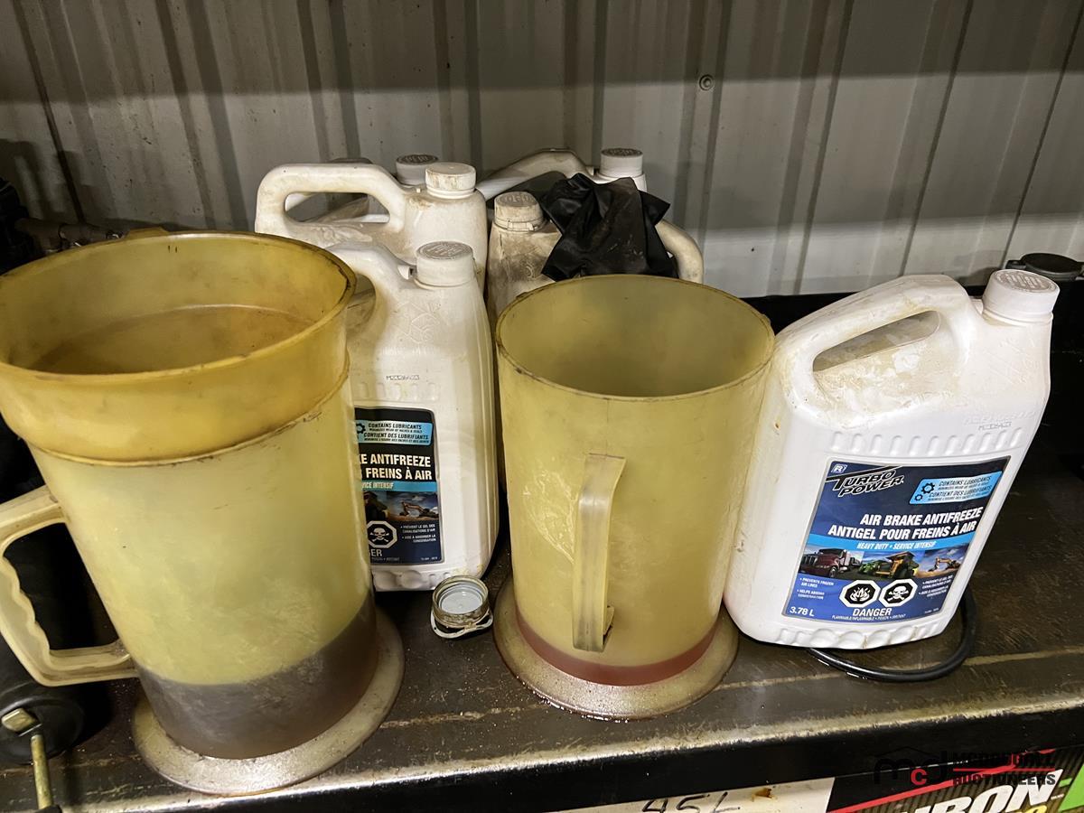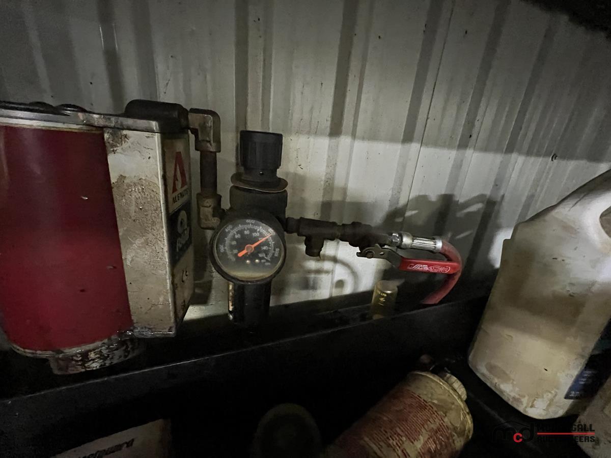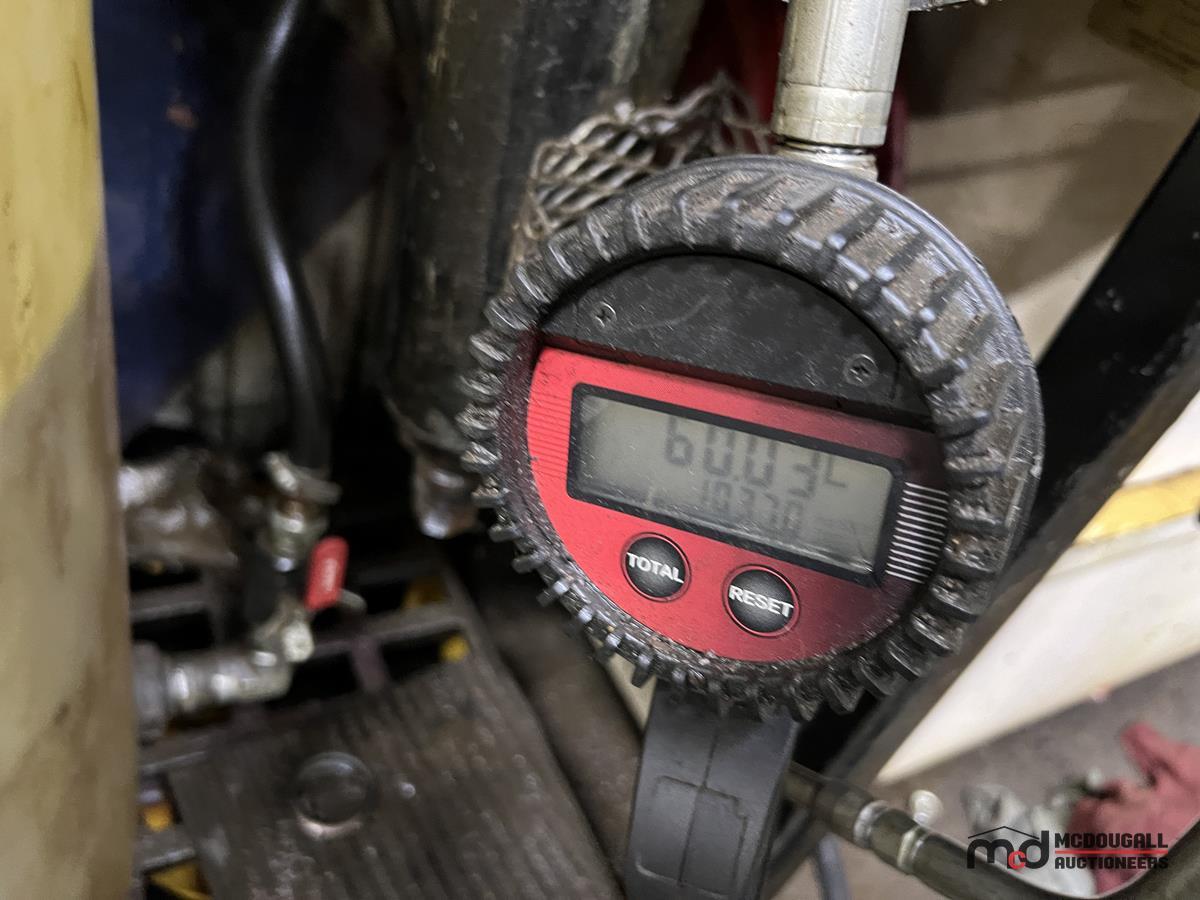 Square Steel Oil Tank w/ (2) Hose Reels, Nozzles, 140-Gallon Cylindrical Oil Tank & Assortment of Vehicle Fluids