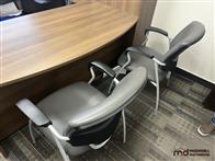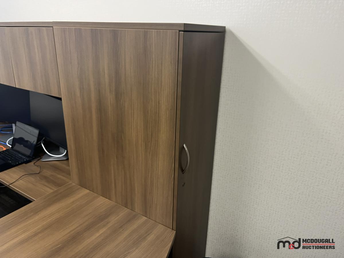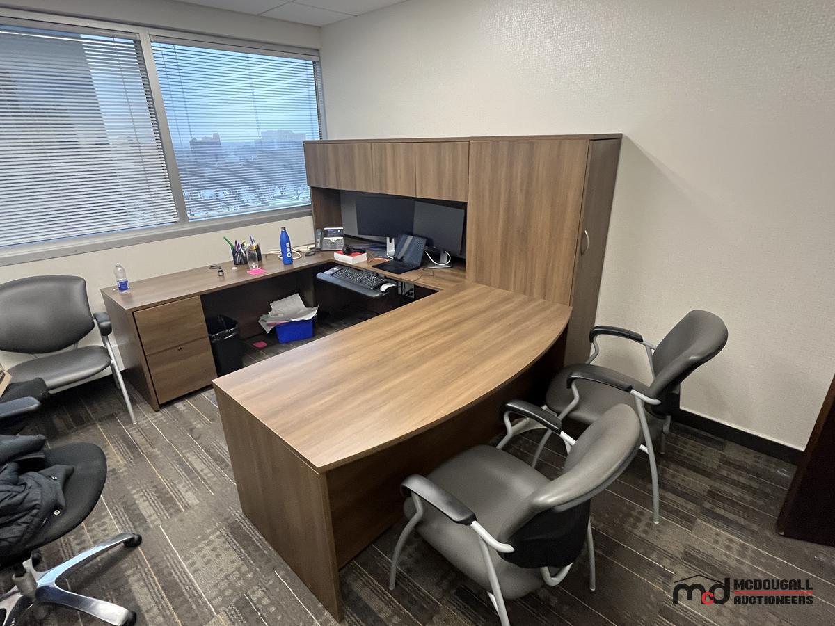 U-Shaped Desk w/ (3) Chairs, 3' Bookshelf, Closet & Mat