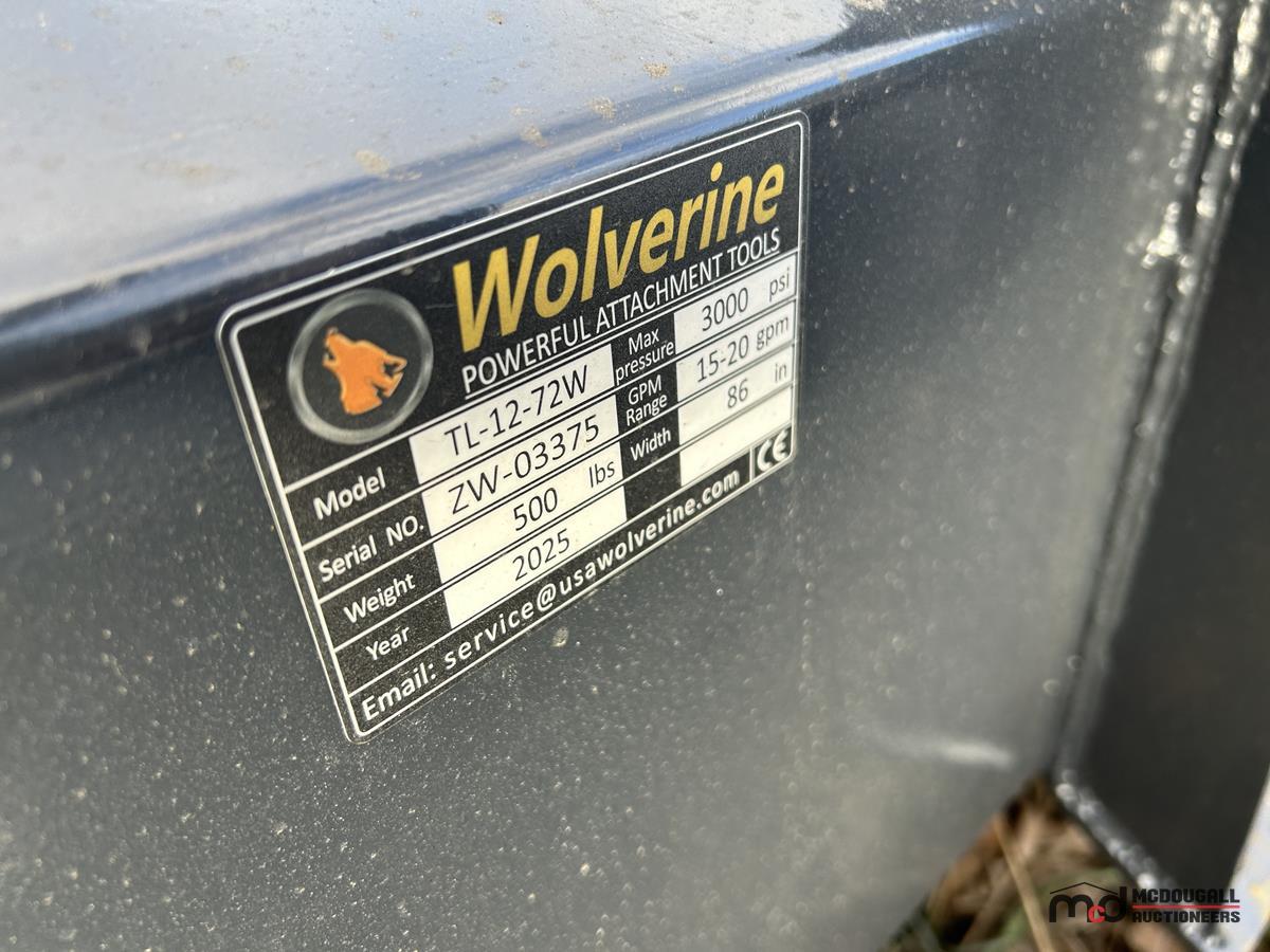2025 Wolverine TL-12-72W Skid Steer Hydraulic Rotary Tiller Attachment