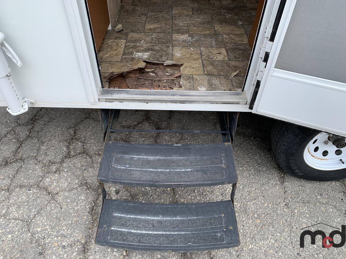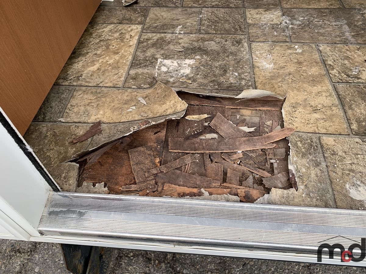 Floor Rot in Front Compartment, In Front of Stove, In Front of Door, Left Corner of Bed and Throughout.
