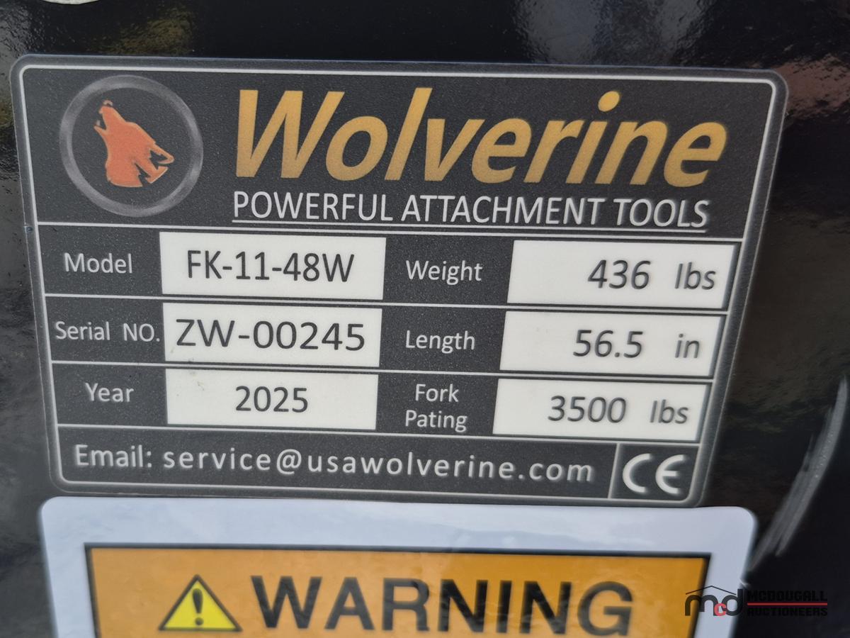 2025 Wolverine FK-11-48W Skid Steer Pallet Fork Attachment
