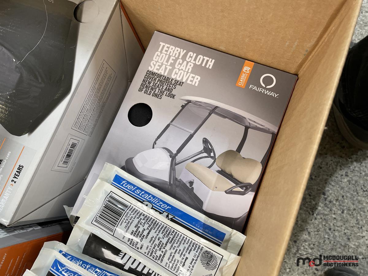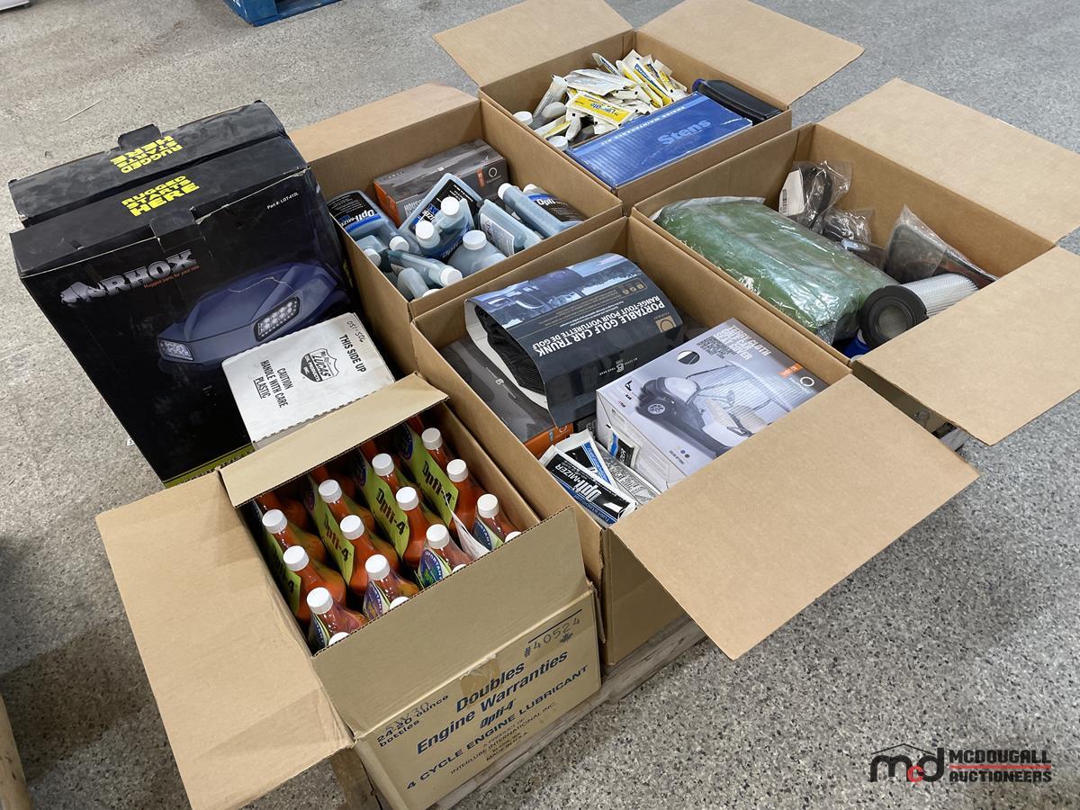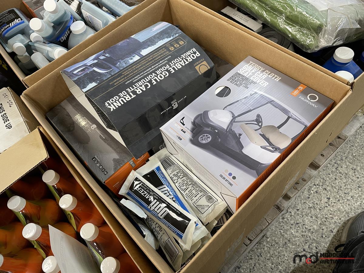 Pallet of Oils, Greases, Other Shop Supplies, Golf Cart Covers & More