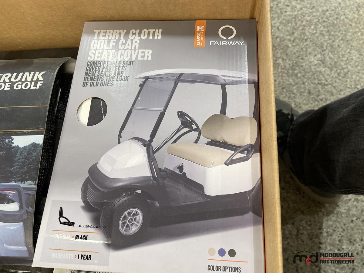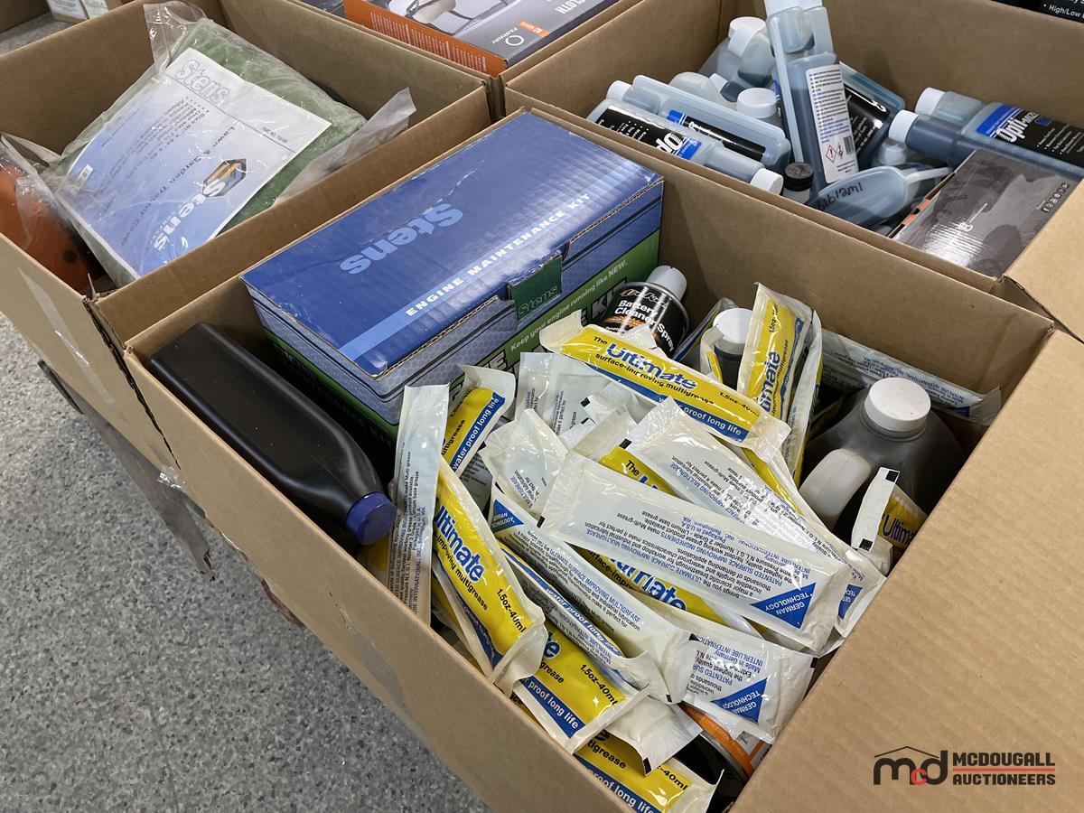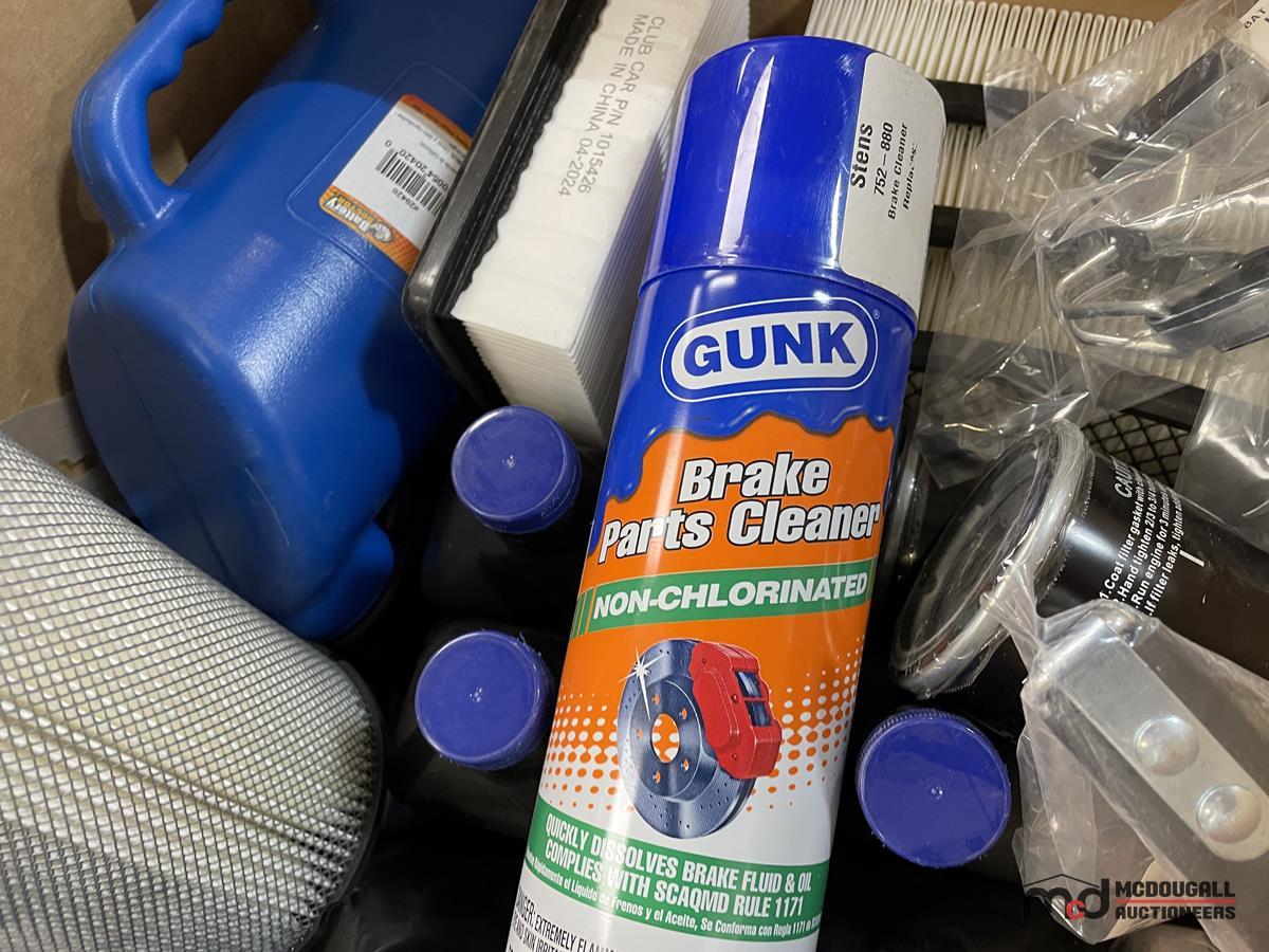 Pallet of Oils, Greases, Other Shop Supplies, Golf Cart Covers & More