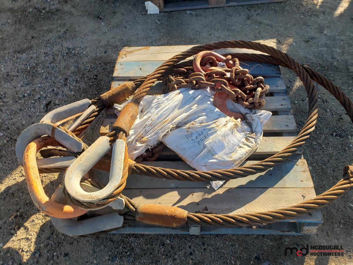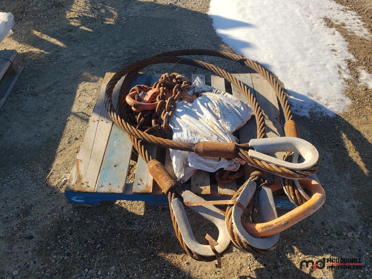 Heavy Diuty Wire Rope Slings and Pallet w/ Misc. Item