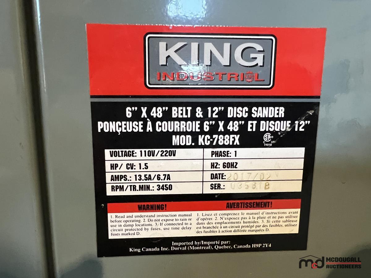 King Industrial (6" x 48") Belt & (12") Disc Sander
