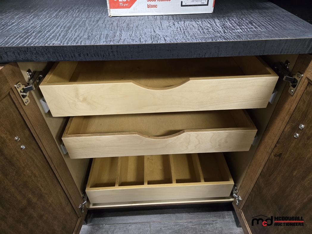Auctioneers Note:: We want to send a congratulations on a retirement from the cabinet industry! Lots of hardware, laminate and supplies for the next generation of builders.
