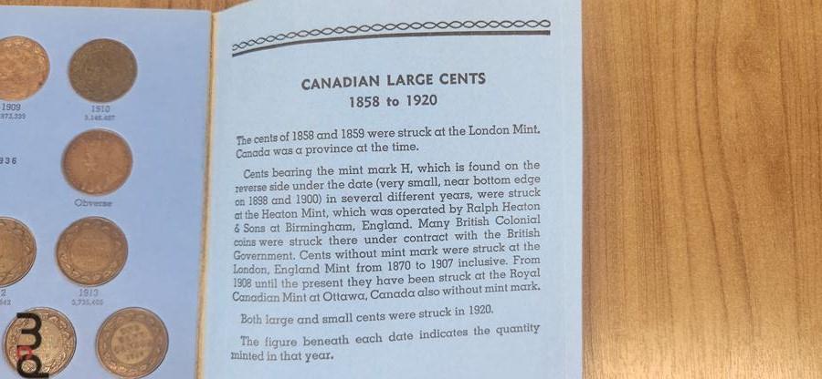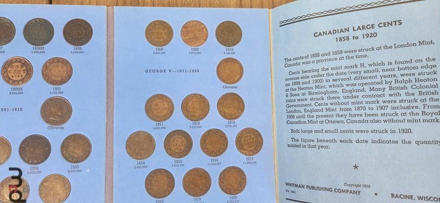 Between 1859 & 1920 Canada Collection of (43) Large 1 Cent Coins in Whitman Folder