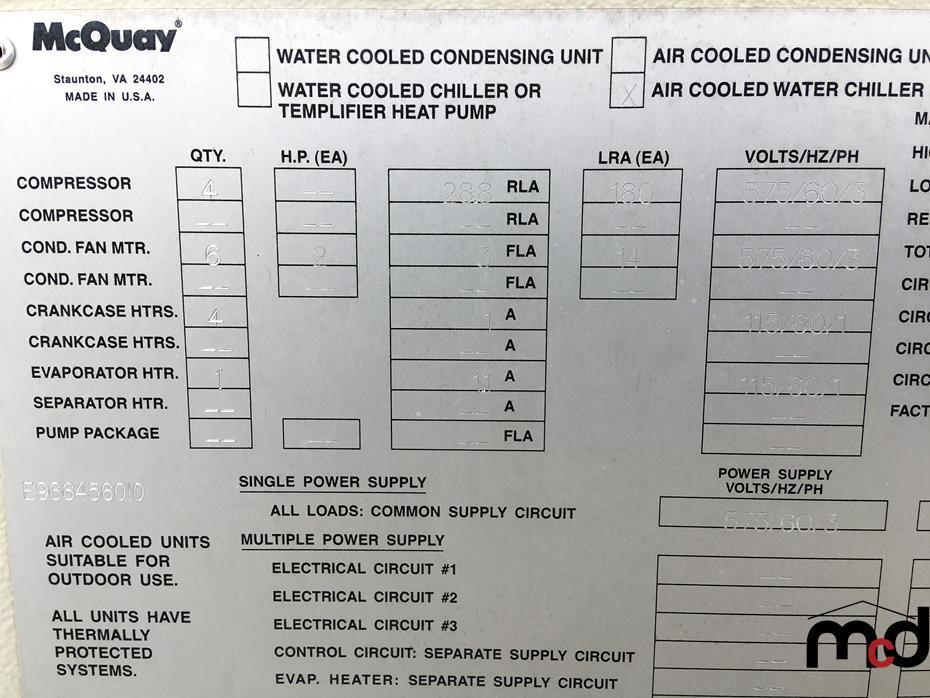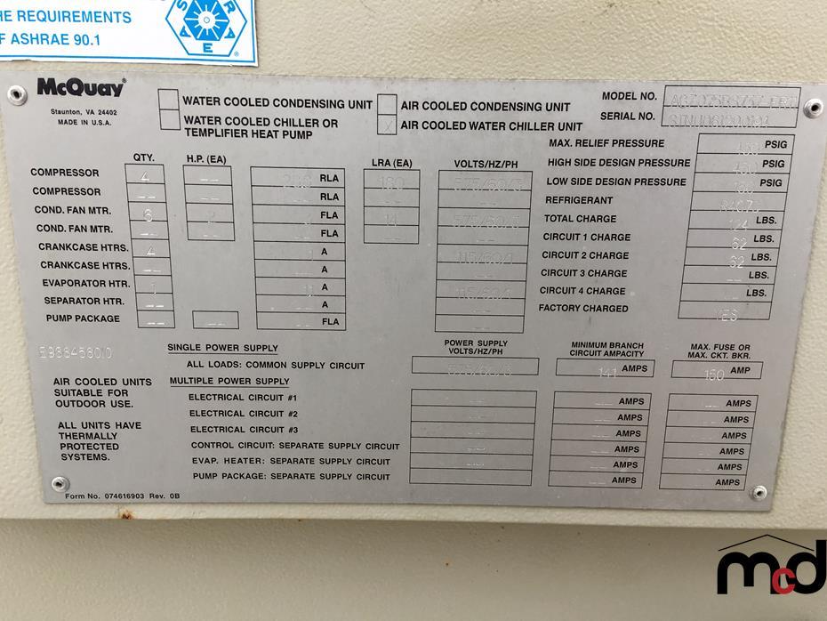 McQuay Roof Top Air Cooled Water Chiller Unit