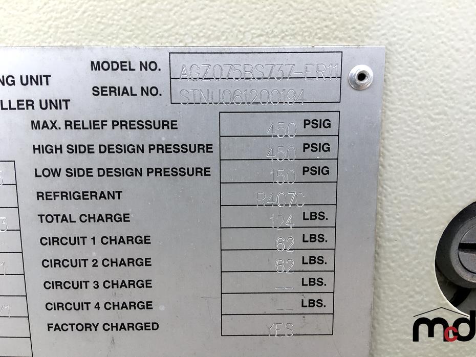 Unit Operating Charge, R-22: 59lbs (27kgs),