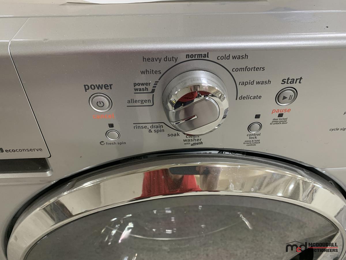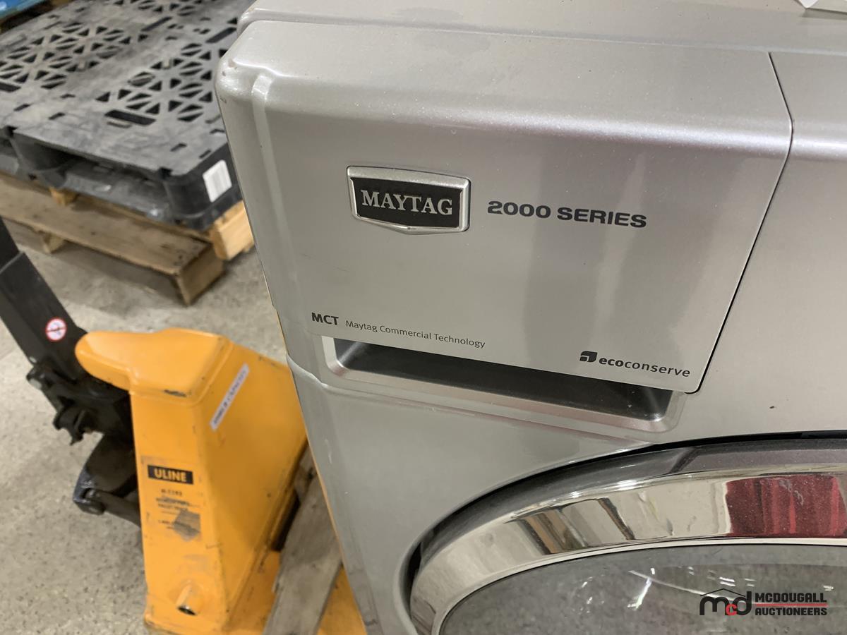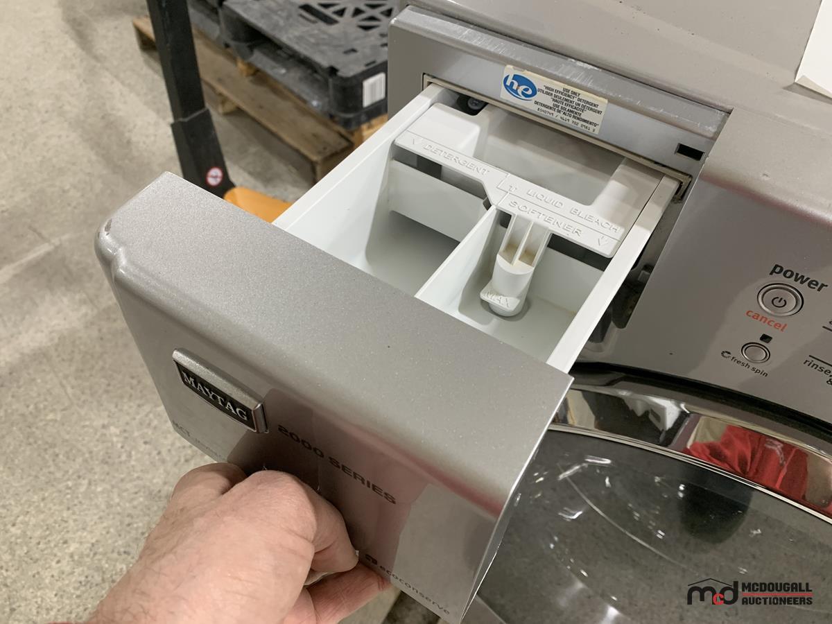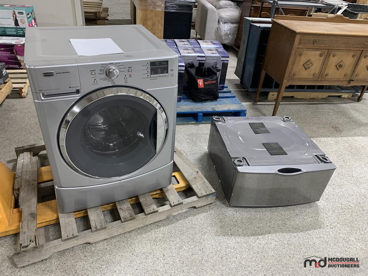 Stainless Steel Maytag Washer & Pedestal (Slow Spin Cycle)