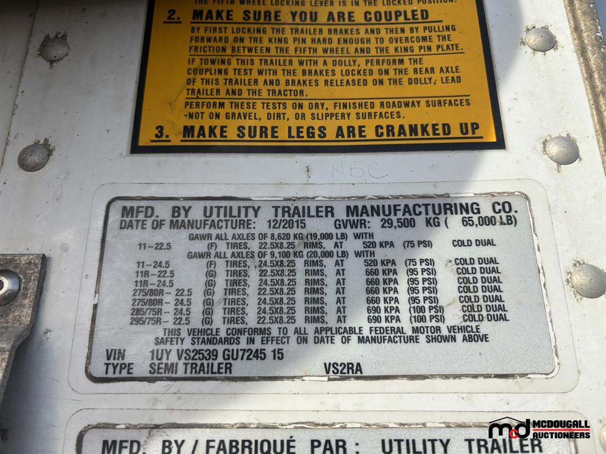 2016 Utility VS2RA 53' T/A Reefer Semi Trailer