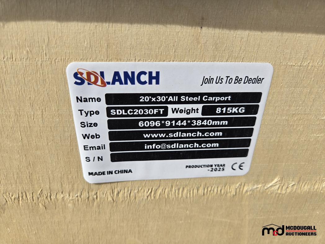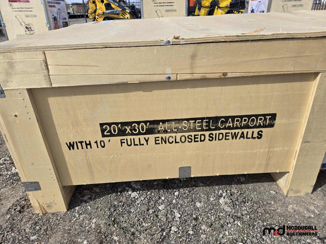 2025 Sdlanch SDLC2030FT 20'x30' All-Steel Carport w/ Enclosed Sidewalls
