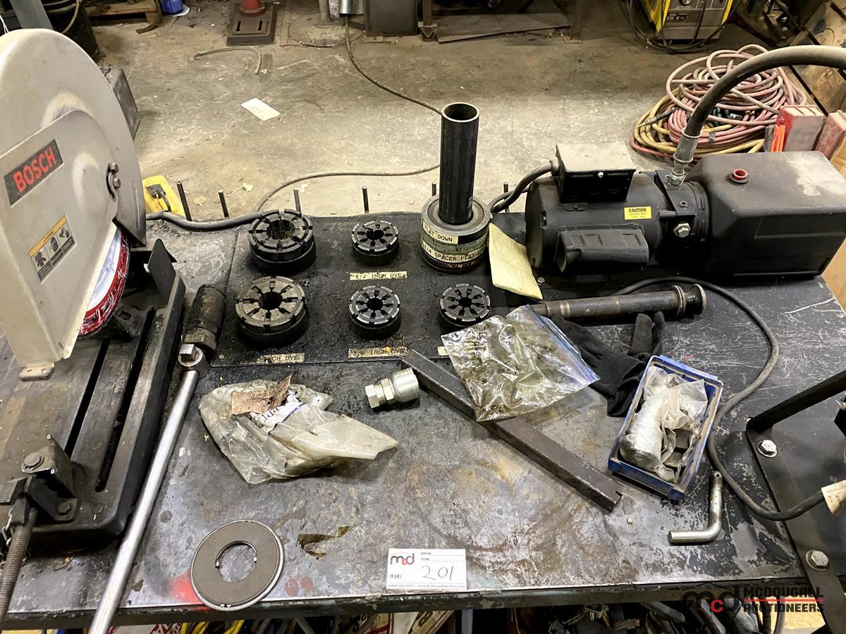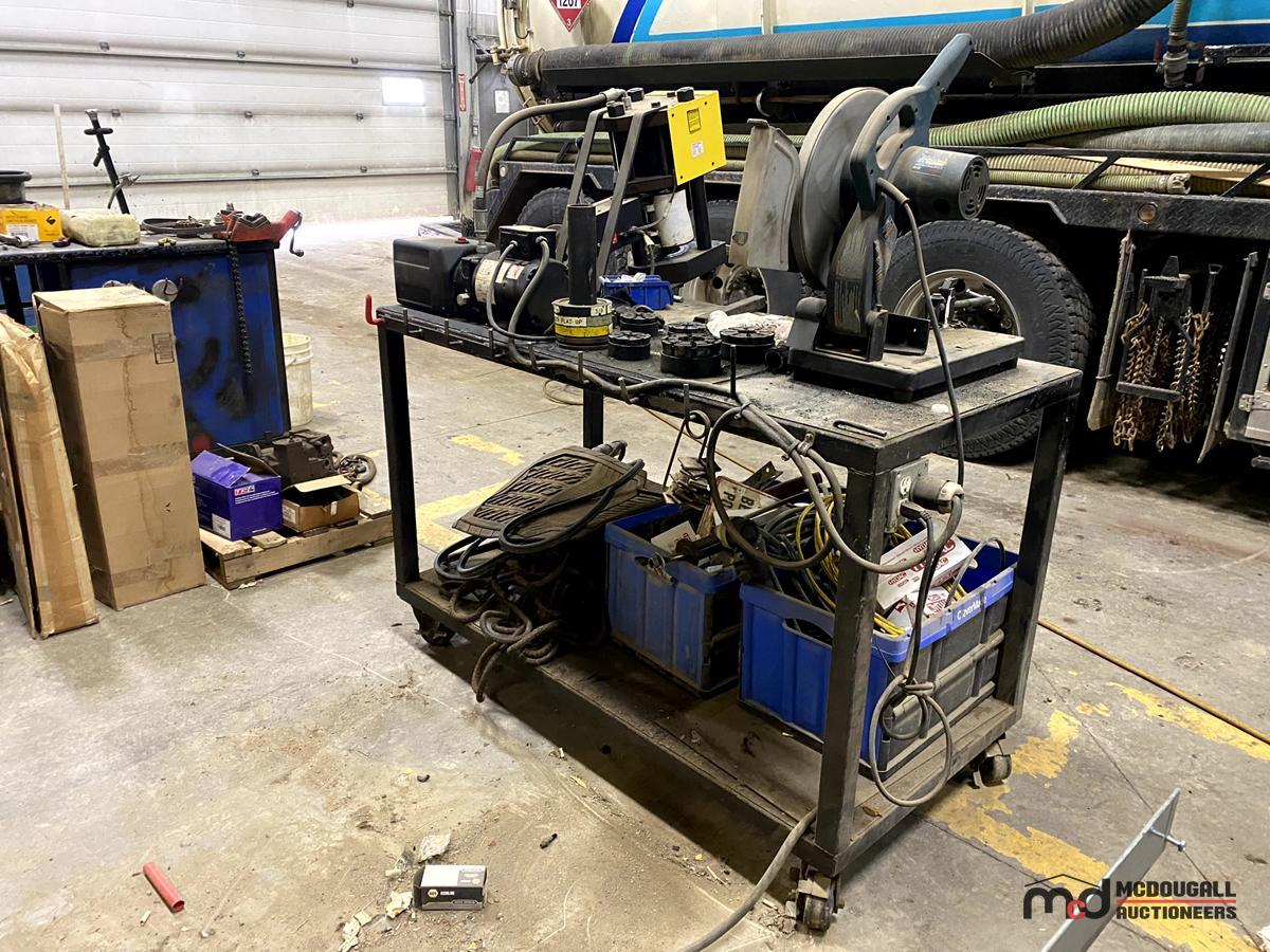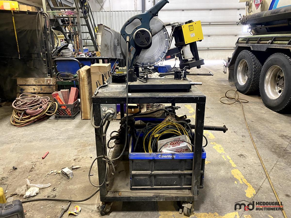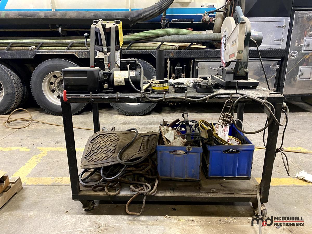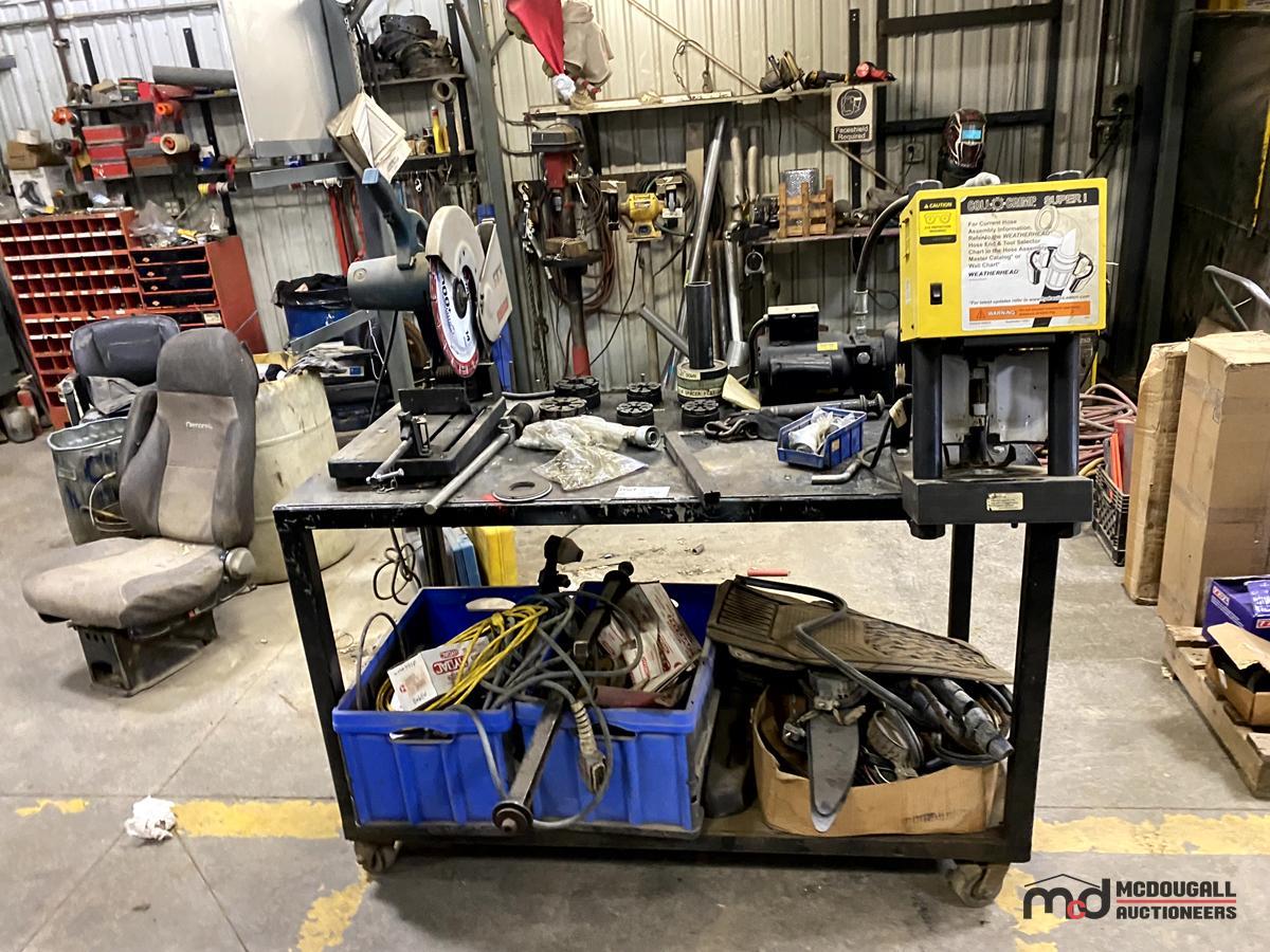 Workbench has a Circular Saw, a Pipe Crimper, Various Cords, Hardware, Ropes, Belts & More