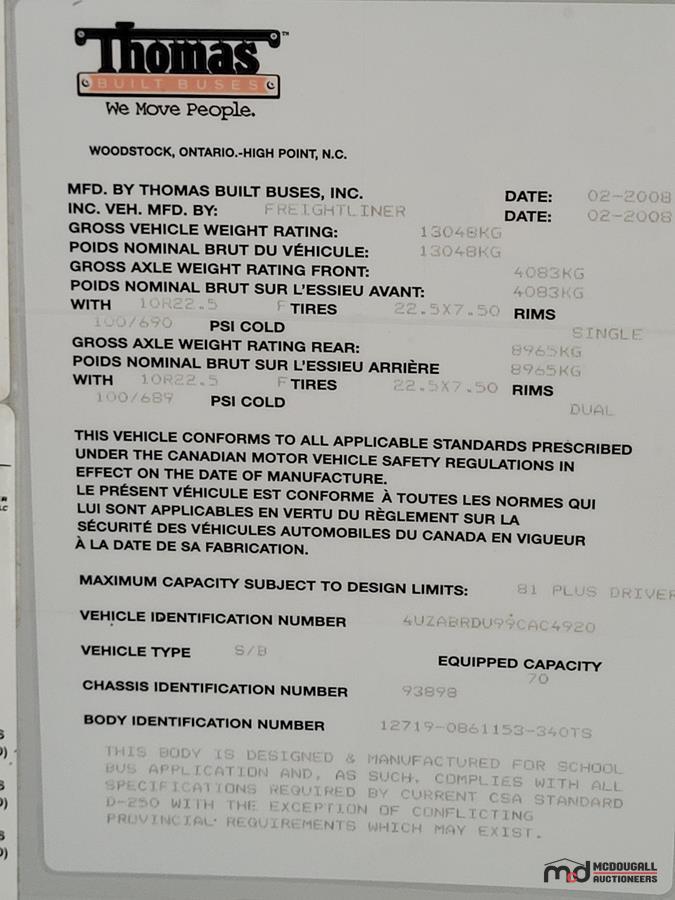 It is the purchaser's sole responsibility to ascertain, confirm, research, inspect, and/or investigate the unit prior to bidding. Once the unit has been removed from McDougall Auction's sale location, the purchaser accepts the unit "as is."