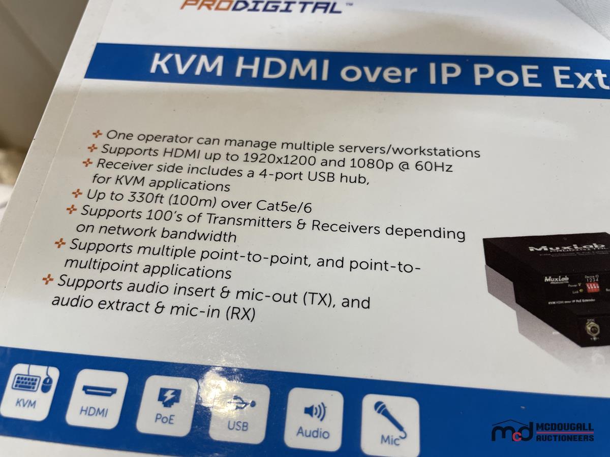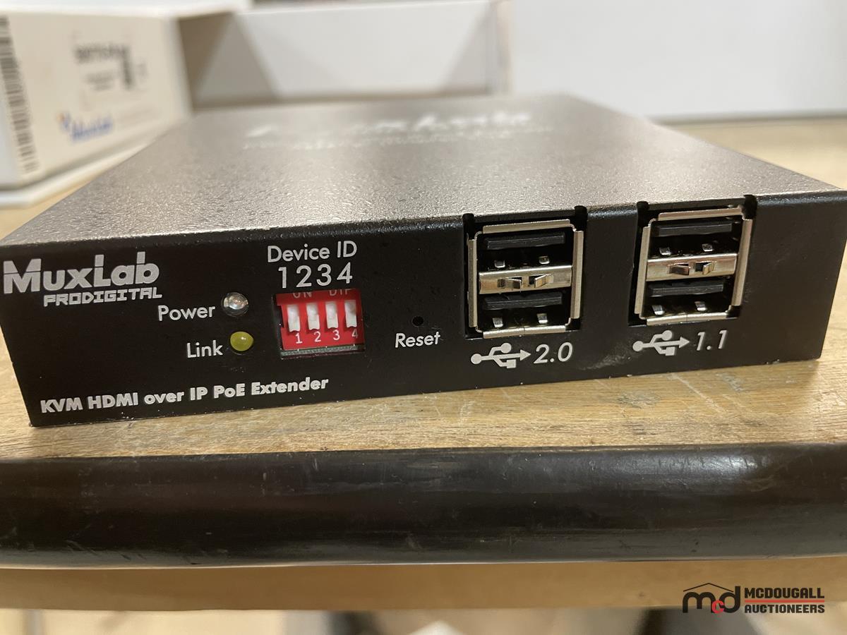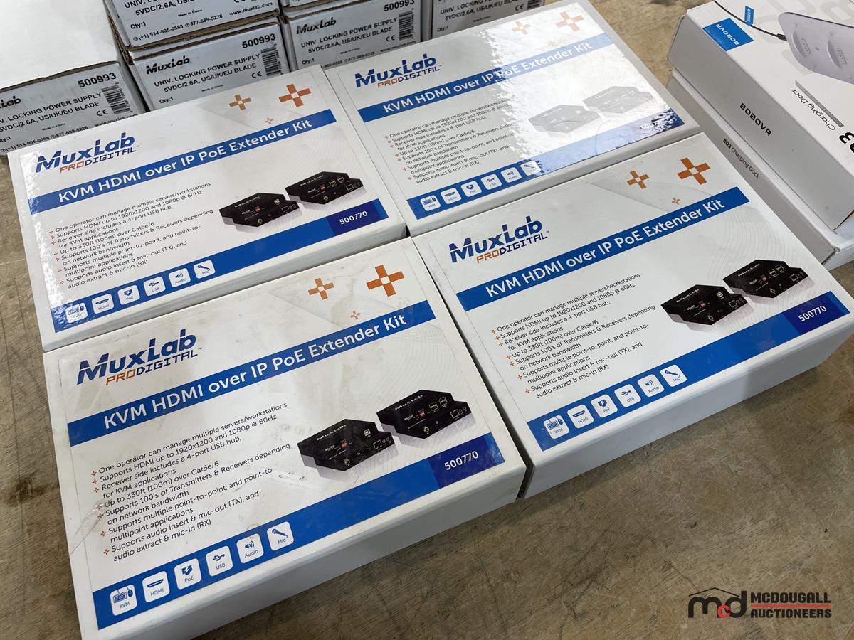 (4) Muxlab HDMI Over IP Extenders, (2) Battery Chargers & (7) Power Supplies