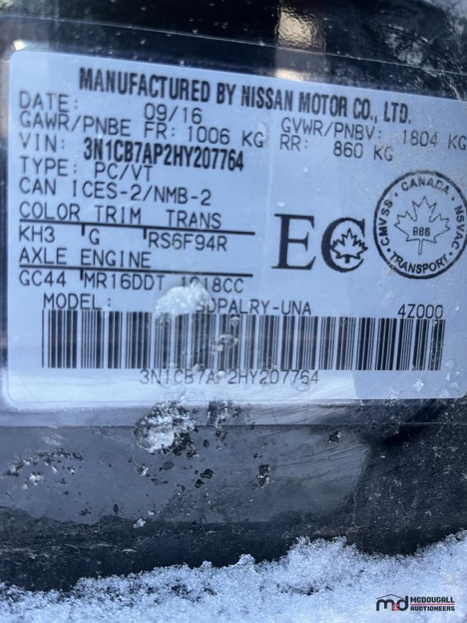 Serial Number: 3N1CB7AP2HY207764