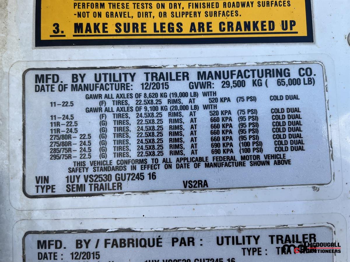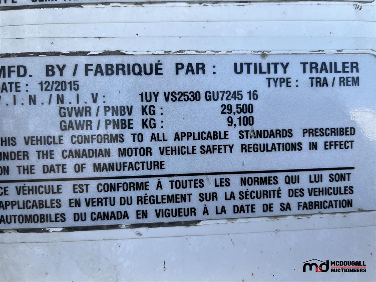 2016 Utility VS2RA 53' T/A Reefer Semi Trailer