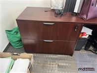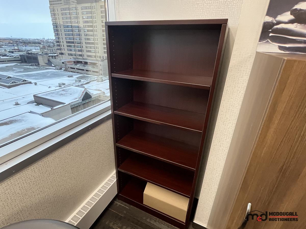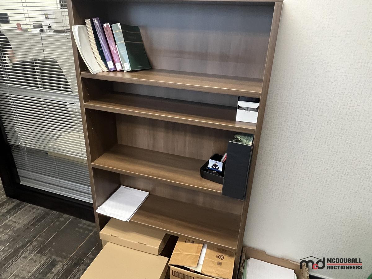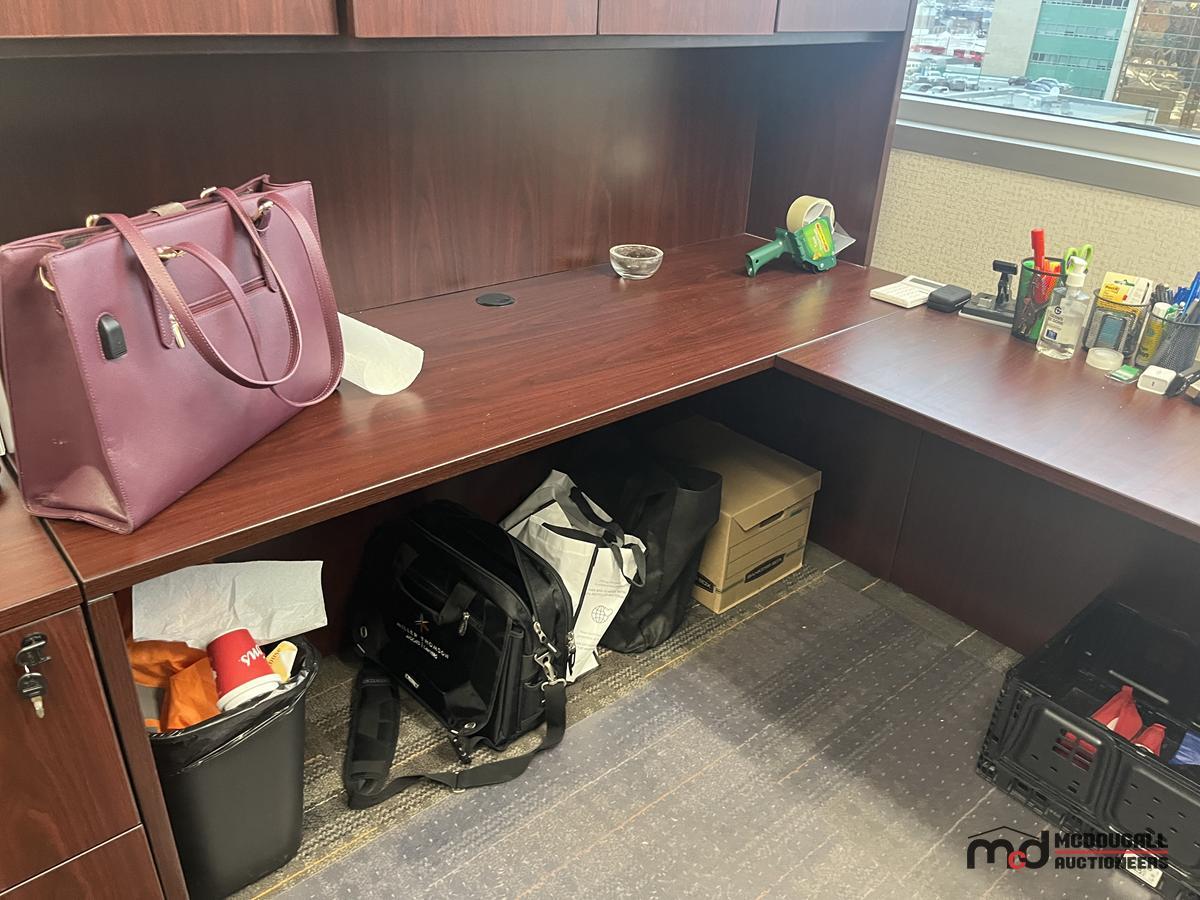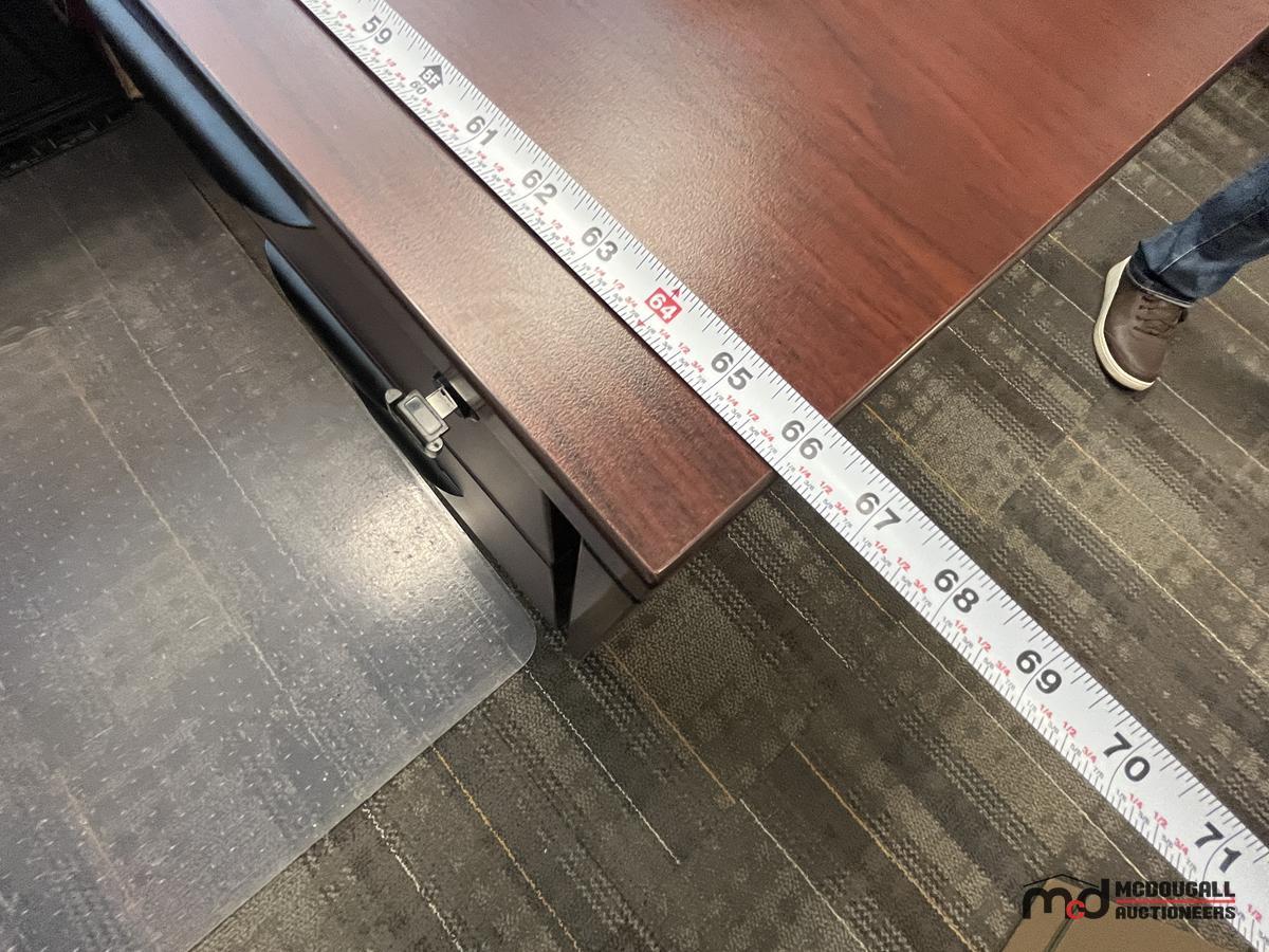 U-Shaped Desk w/ (2) Chairs, (2) 3' Bookshelves, Filing Cabinet & Mat