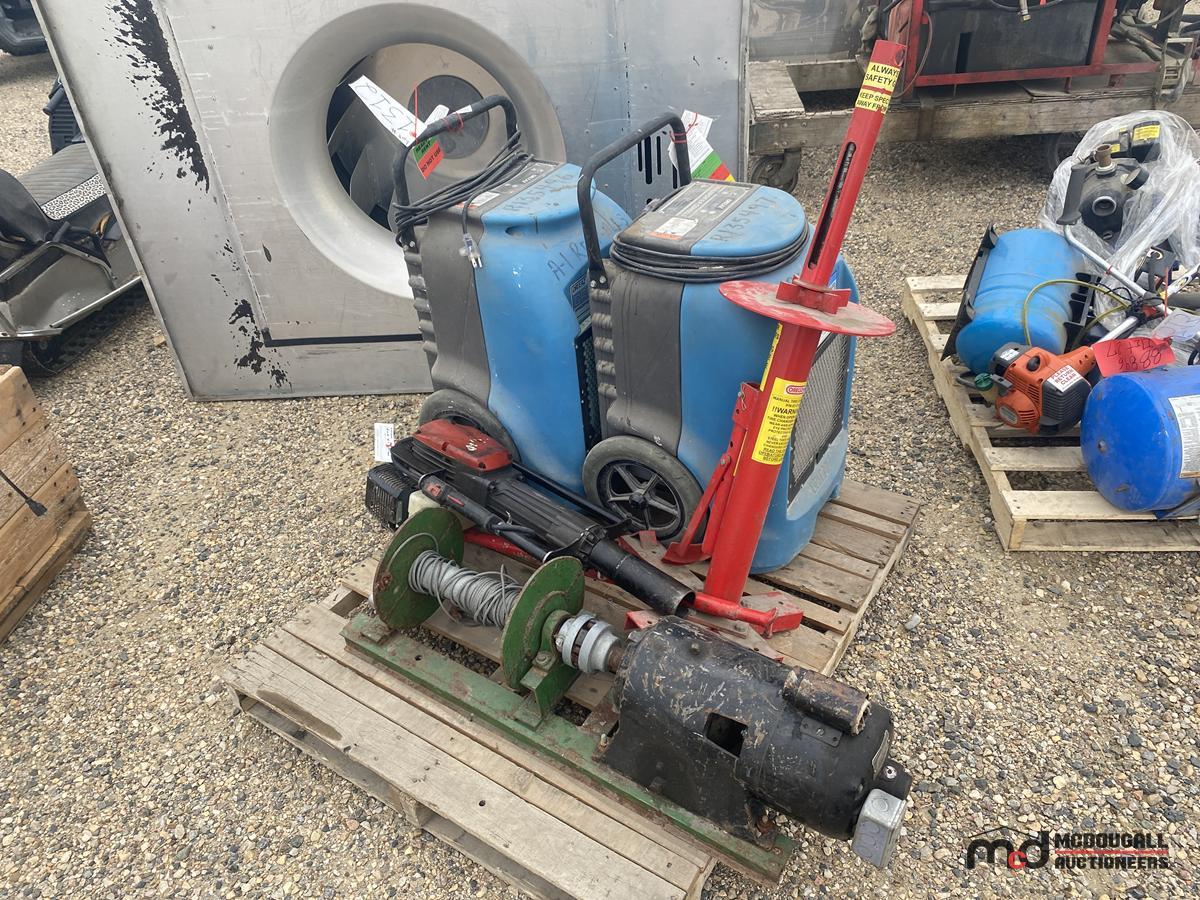 Electric Winch, Manual Tire Charger, Dri-Eaz Dehumidifiers and Hydraulic Jackhammer
