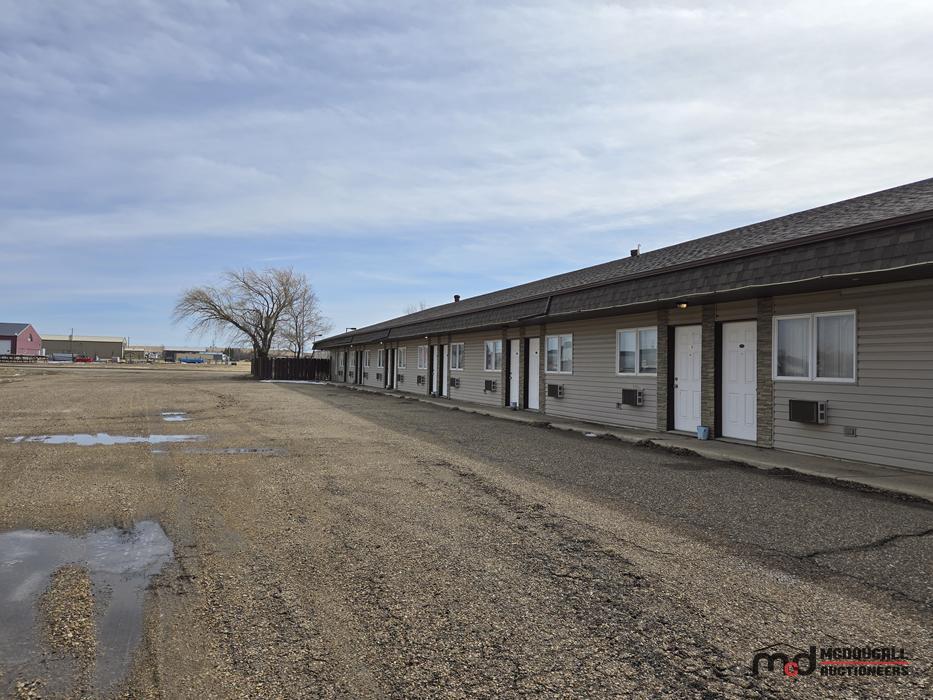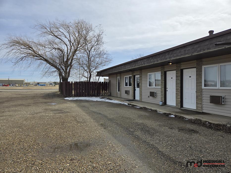 This property offers a highway-oriented motel opportunity on the west side of Shaunavon, just off the junction of Highways 13 and 37. The site is improved with a 24-room, single-storey motel, an attached owner/manager's living quarters, front office and reception area, and a detached garage. The main motel improvements were originally constructed around 1981, with an addition to the living quarters and garage added around 1995. The location provides convenient access and visibility for transient, work crew, or longer-stay accommodation use.