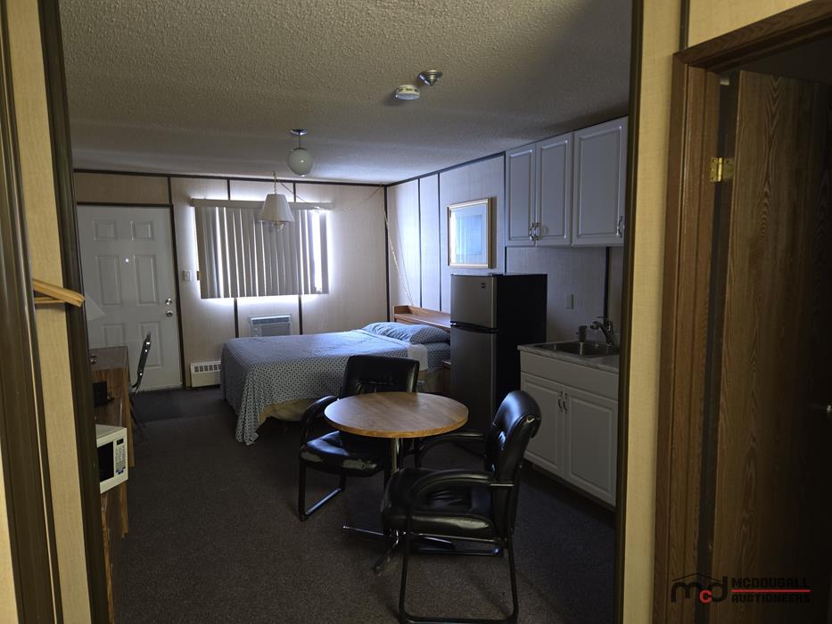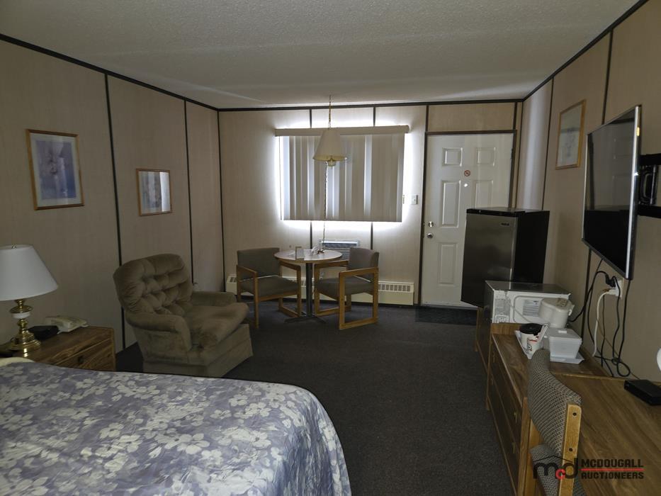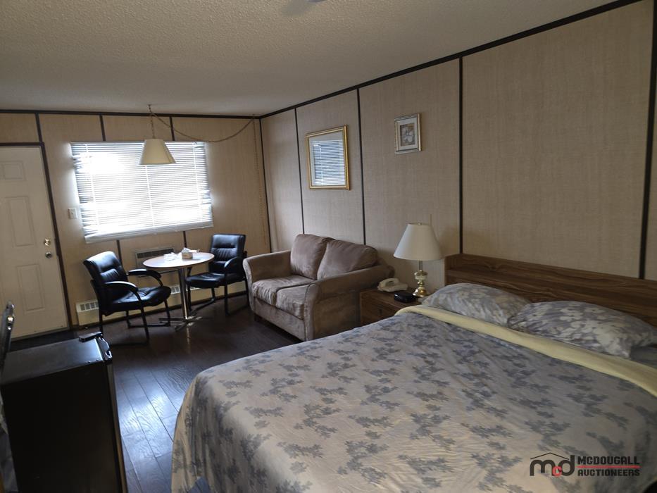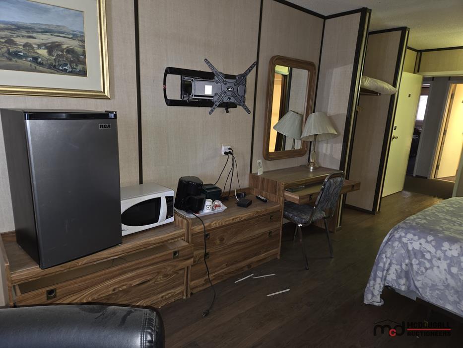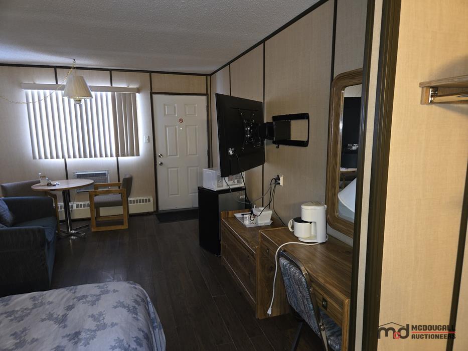 With a large in-town site, direct highway access, and an existing motel configuration, the property presents an opportunity for a buyer looking to restore, repurpose, or reposition a hospitality asset in southwest Saskatchewan. The property is currently not heated; however, the water lines were reportedly drained by the property manager, and the same party has carefully monitored the property through the past winter. While buyers should still complete their own inspections and due diligence regarding mechanical systems and overall building condition, this ongoing oversight is a helpful factor in understanding the recent care of the property. The existing mix of standard guest rooms, extended-stay style rooms, onsite management quarters, and detached garage space offers flexibility for continued lodging use or other permitted commercial applications.