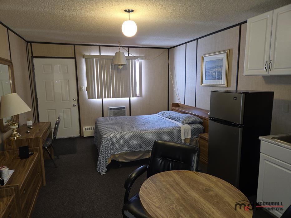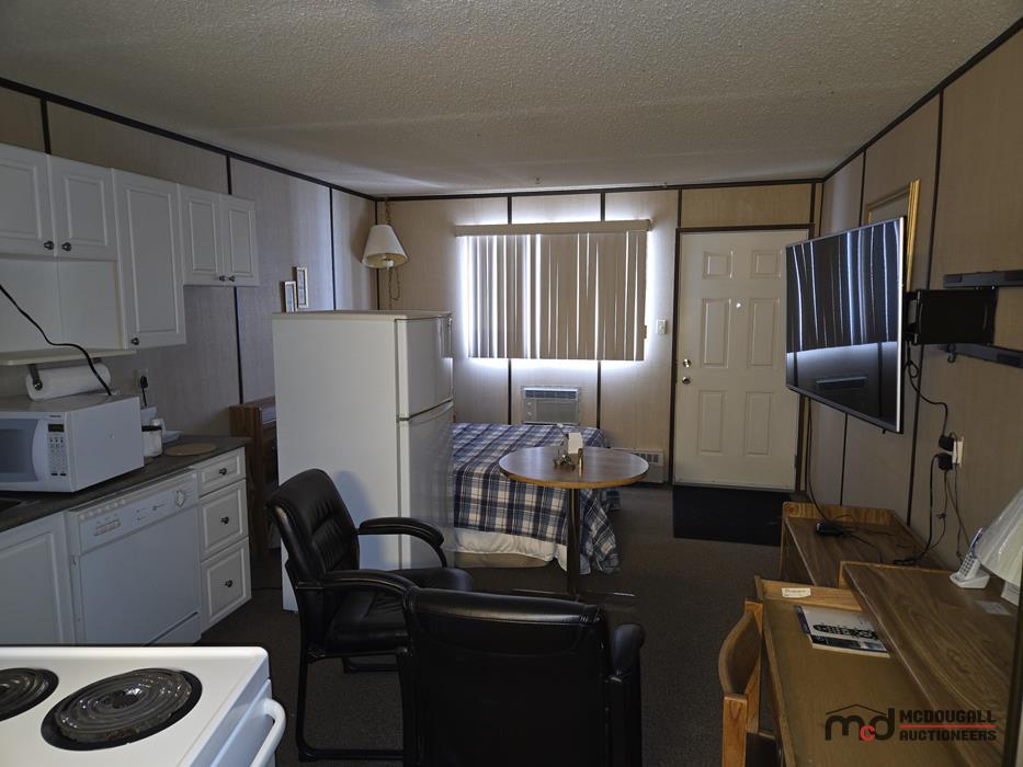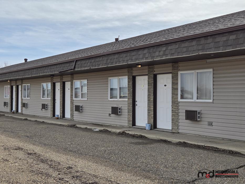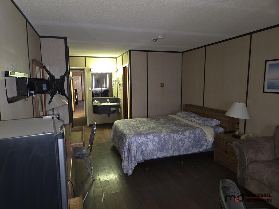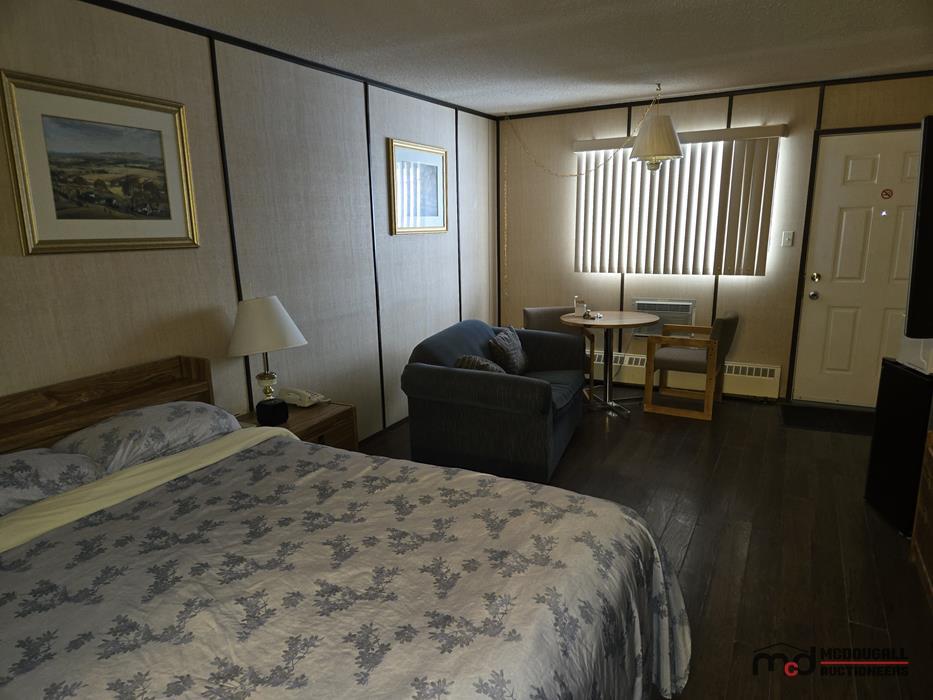 With a large in-town site, direct highway access, and an existing motel configuration, the property presents an opportunity for a buyer looking to restore, repurpose, or reposition a hospitality asset in southwest Saskatchewan. The property is currently not heated; however, the water lines were reportedly drained by the property manager, and the same party has carefully monitored the property through the past winter. While buyers should still complete their own inspections and due diligence regarding mechanical systems and overall building condition, this ongoing oversight is a helpful factor in understanding the recent care of the property. The existing mix of standard guest rooms, extended-stay style rooms, onsite management quarters, and detached garage space offers flexibility for continued lodging use or other permitted commercial applications.