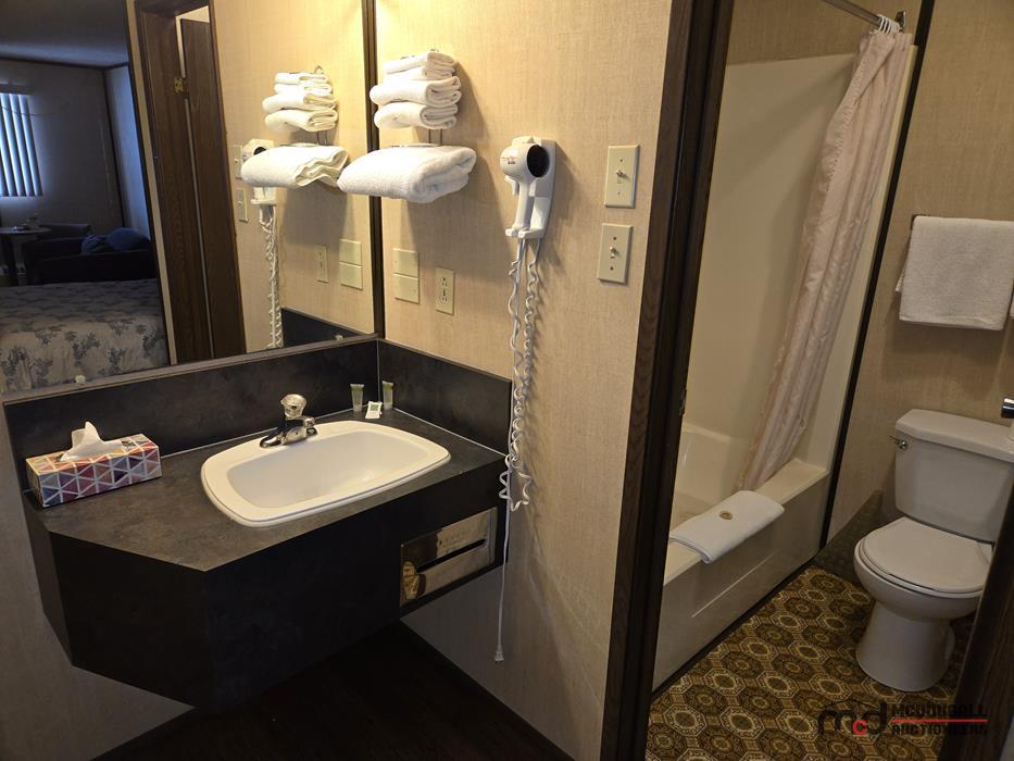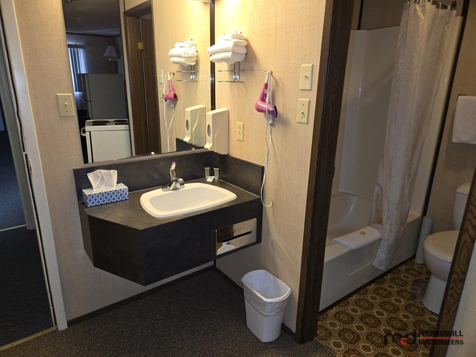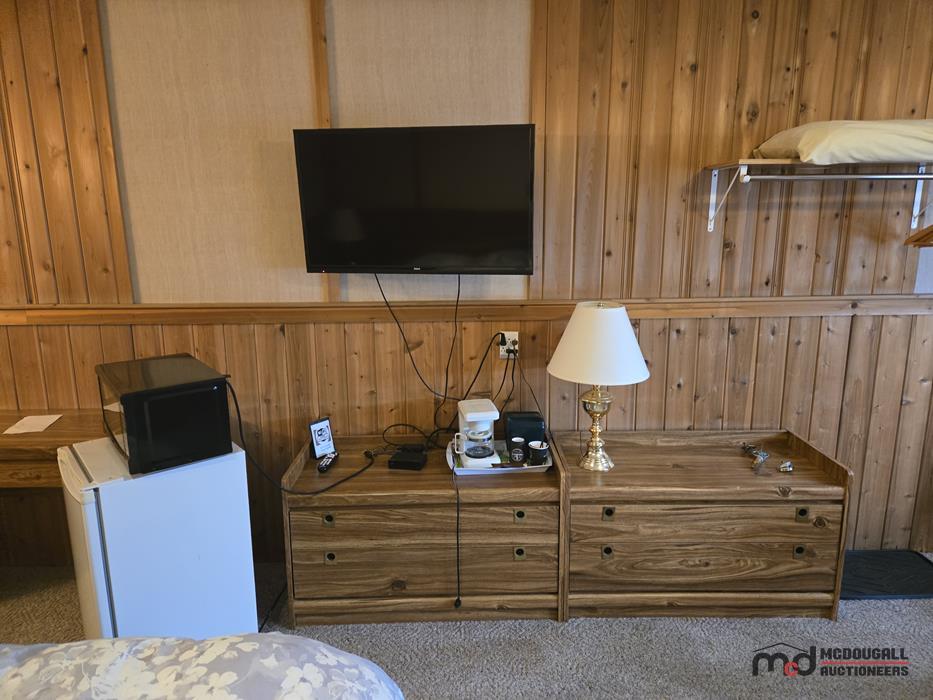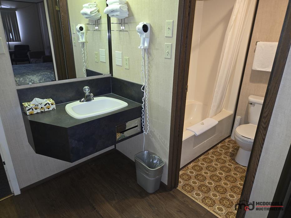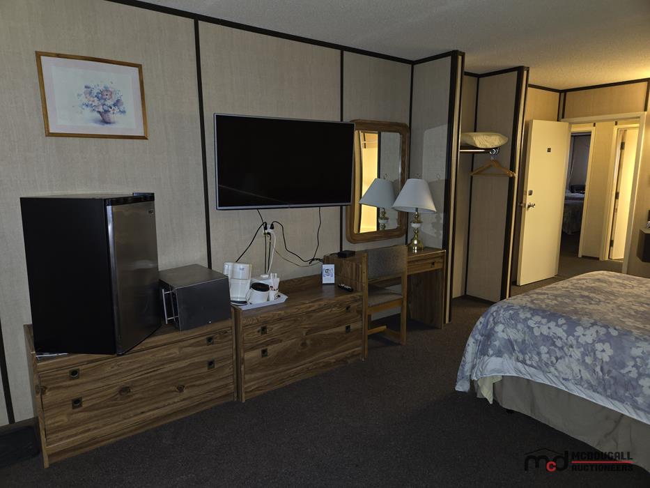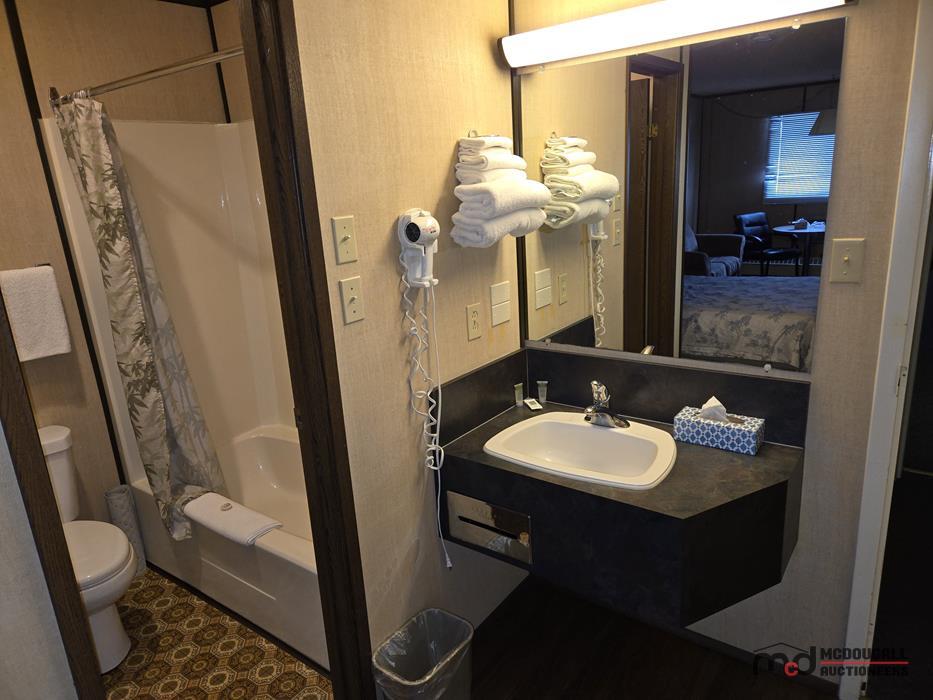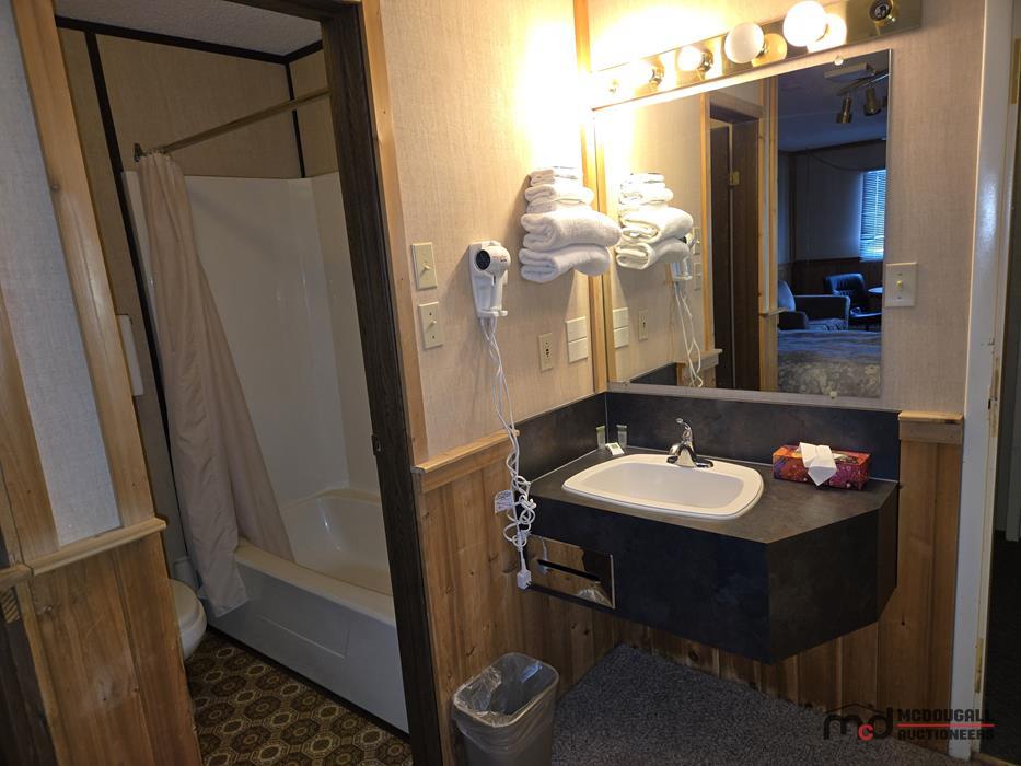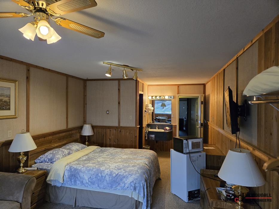 The improvements appear functional in overall layout, but the property shows its age and would benefit from updating and repair. Interior finishes throughout the guest rooms and living quarters are generally dated, with visible wear to flooring, trim, bathrooms, and fixtures. Buyers should expect deferred maintenance in several areas, including moisture staining, worn finishes, older equipment, and repairs or recommissioning work before the property is returned to regular hospitality or alternative use. Overall, this should be viewed as a property with redevelopment, renovation, and repositioning potential rather than a recently modernized turn-key operation.