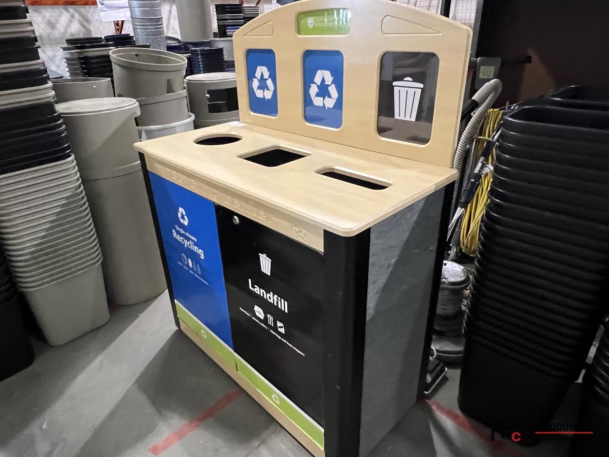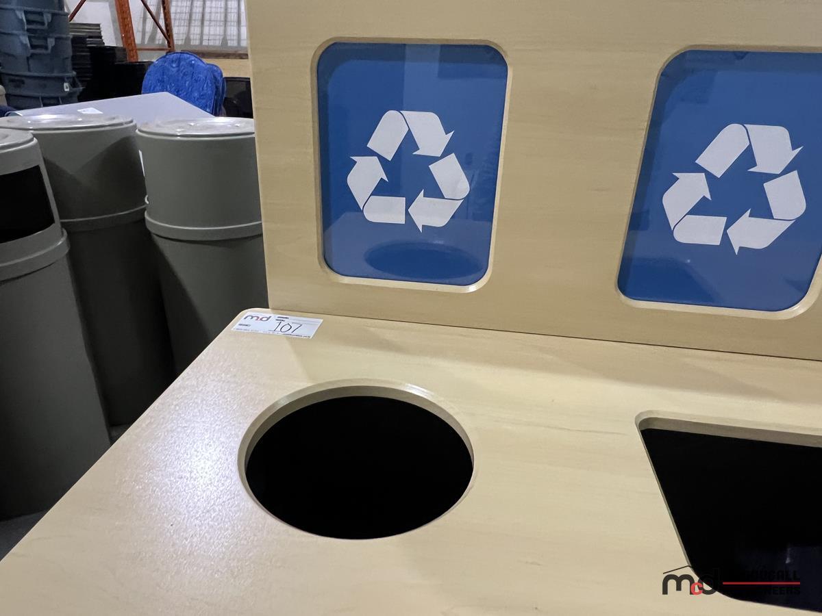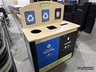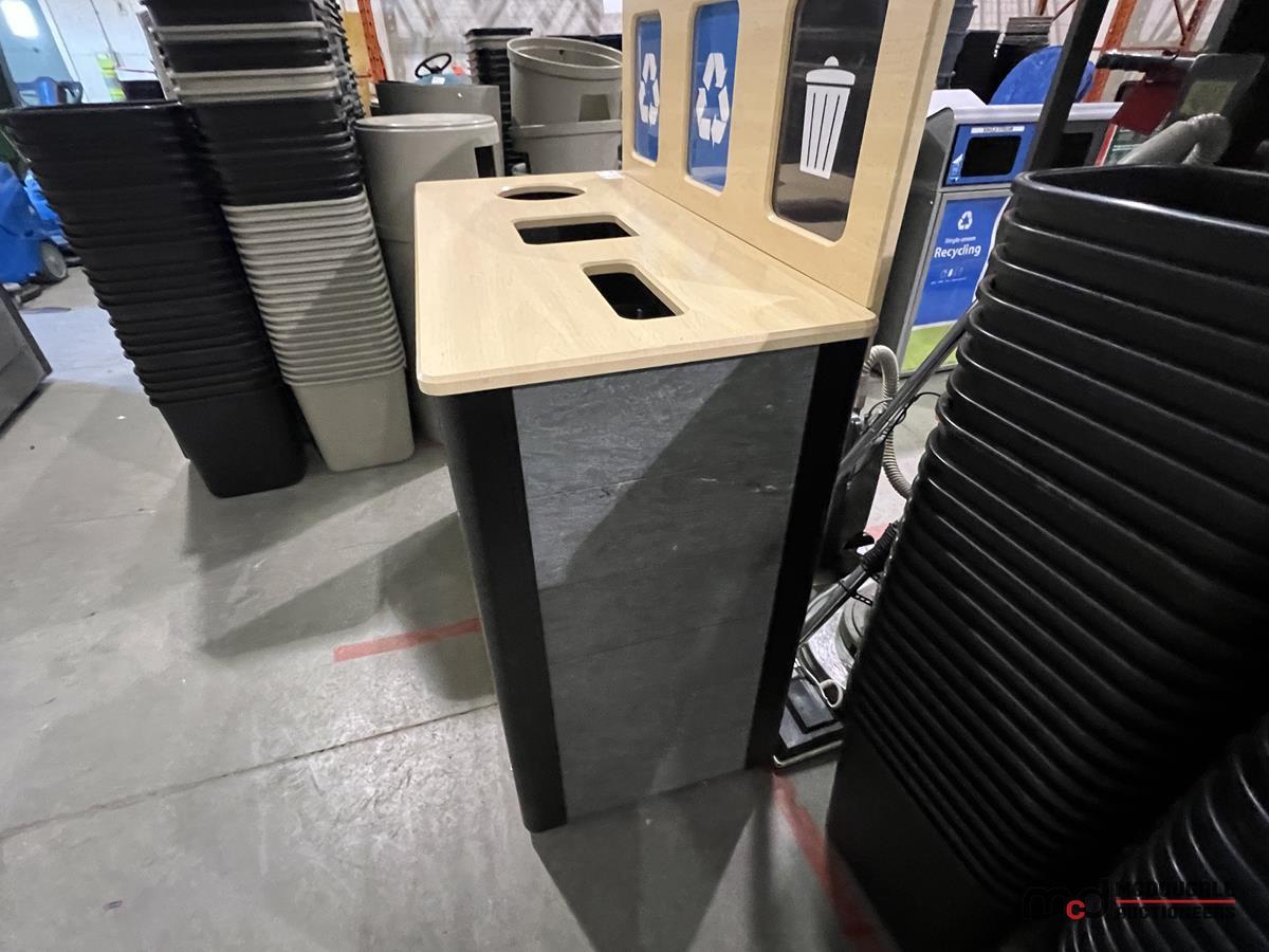 Wood-Top 3-Compartment Steel Disposal Bin