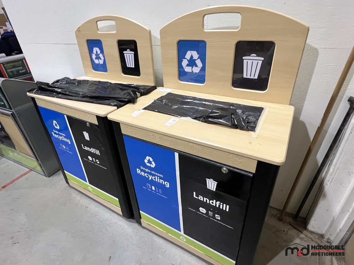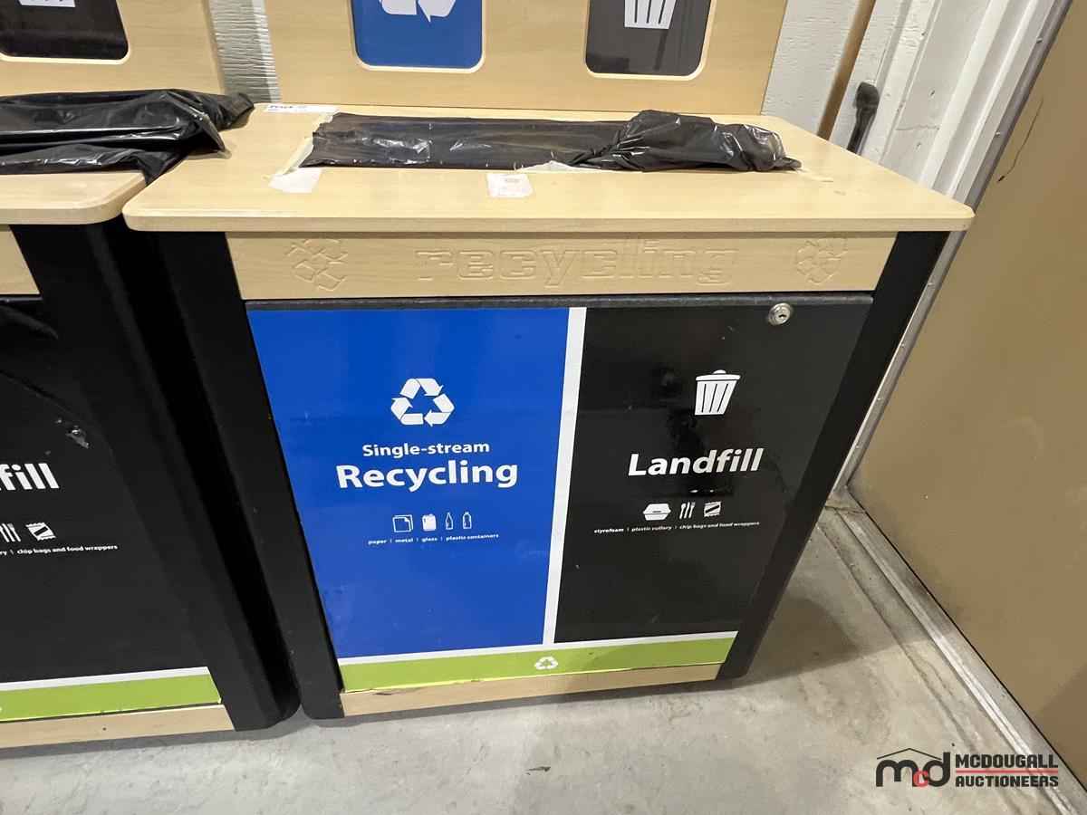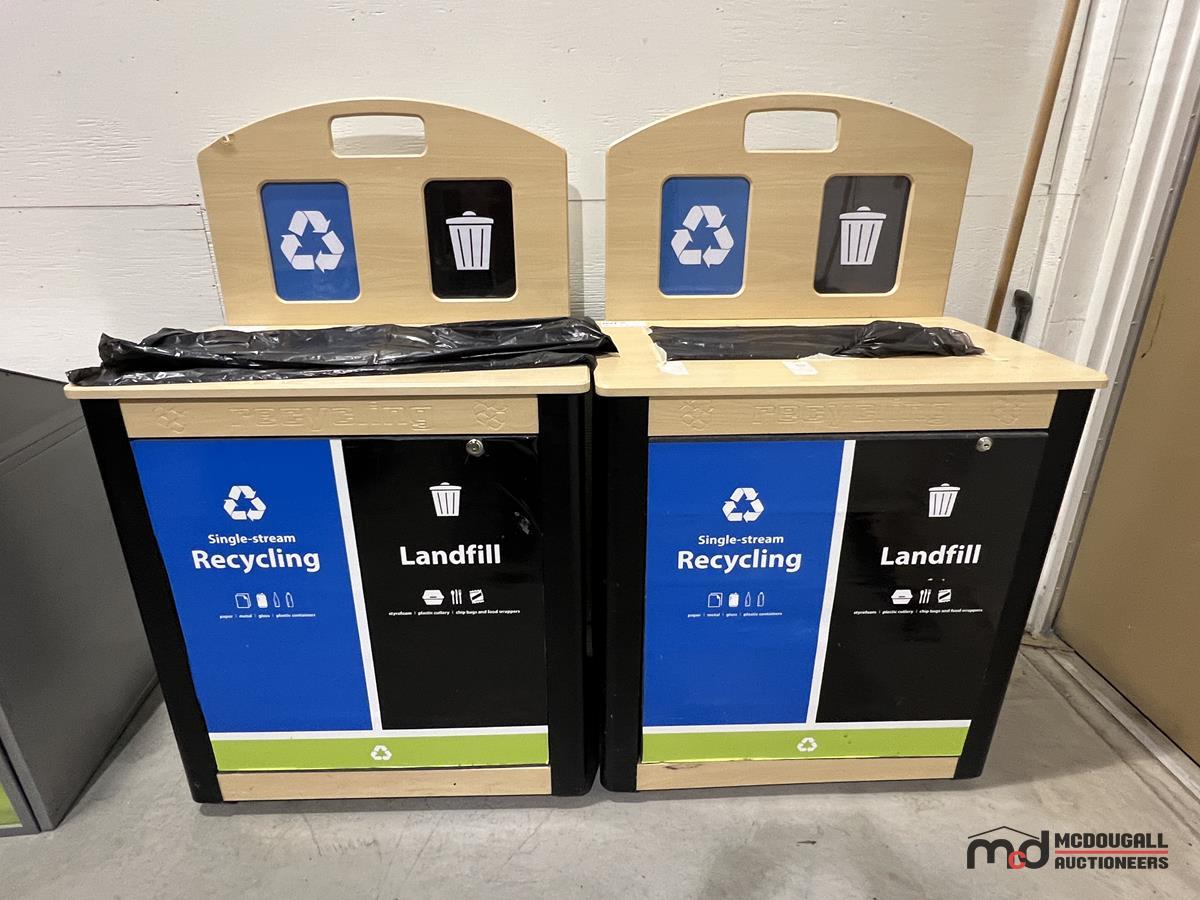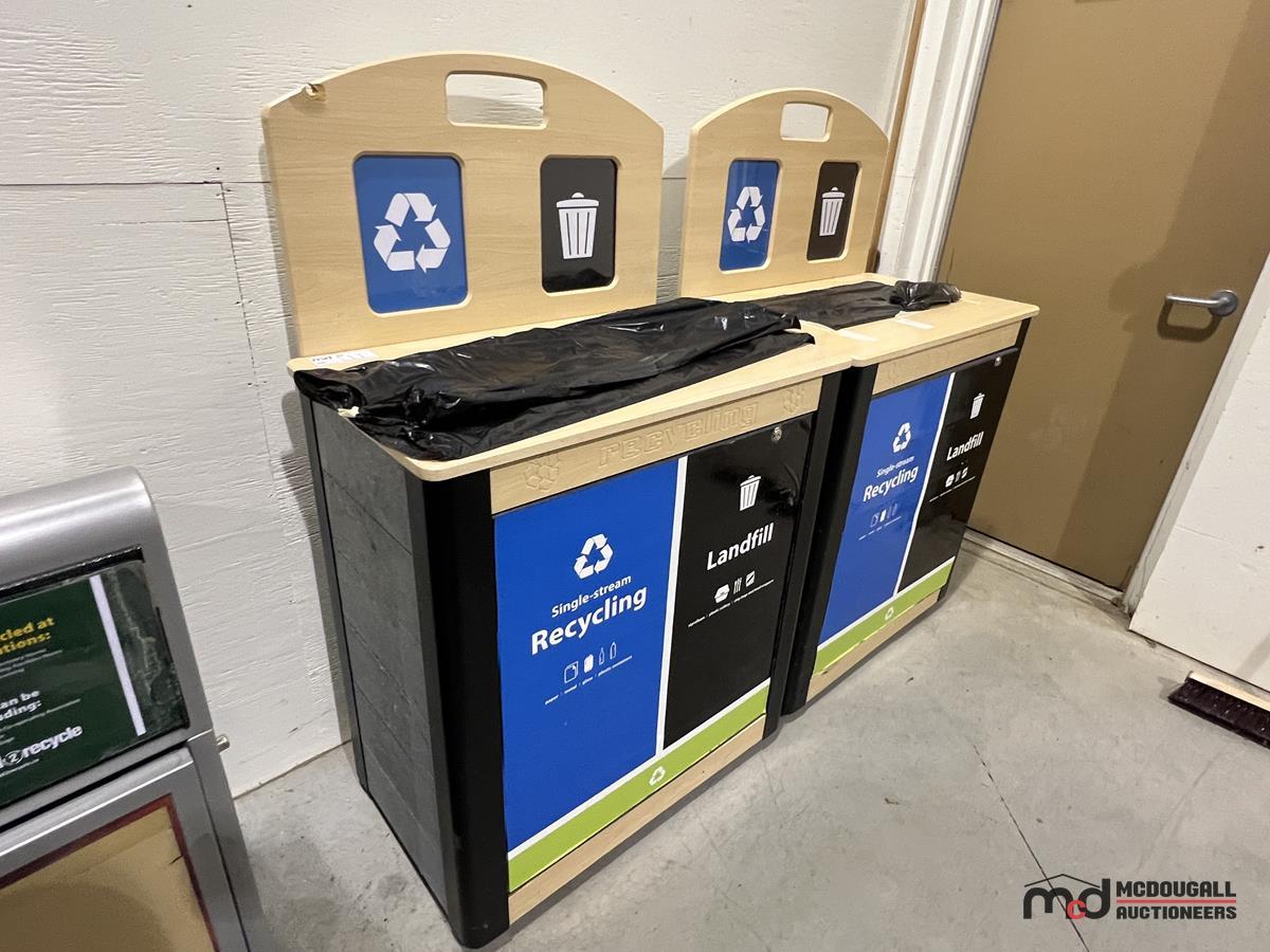 (2) Wood-Top 2-Compartment Steel Disposal Bins
