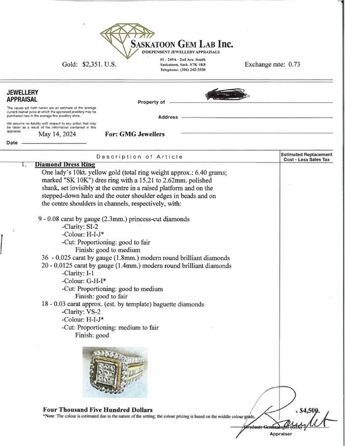 Appraisal Provided by Saskatoon Gem Lab Inc. - This is an Estimated Replacement Cost Appraisal
