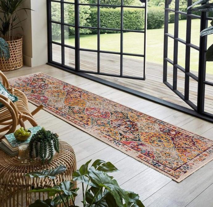 (20) Multicoloured/Yellow/Cream 2'7" x 9' Transitional Chic Runner Rug for Hallway/Kitchen