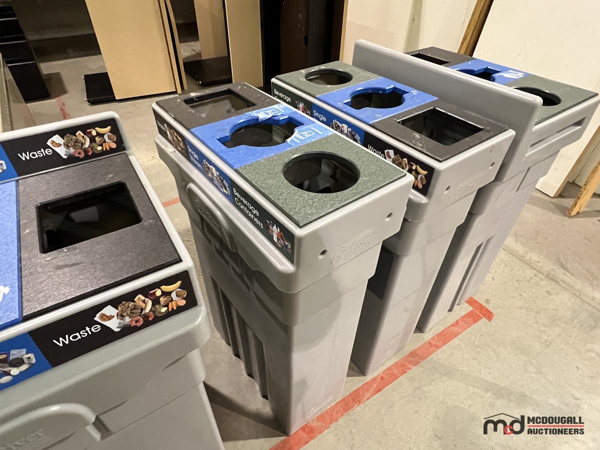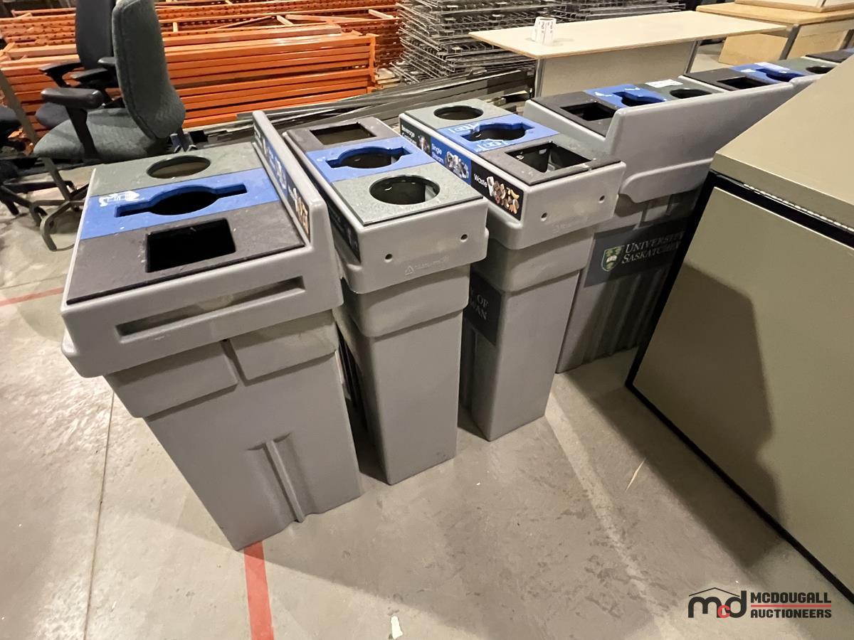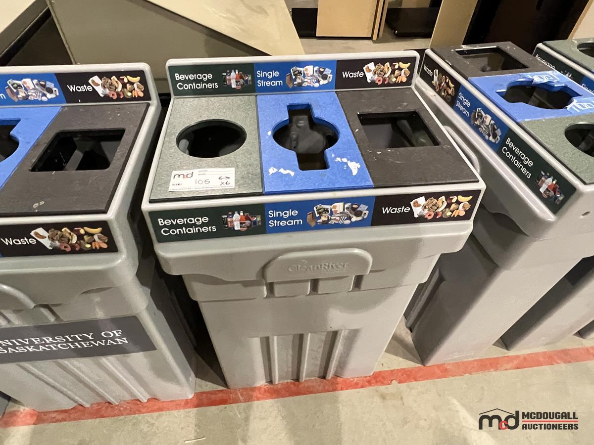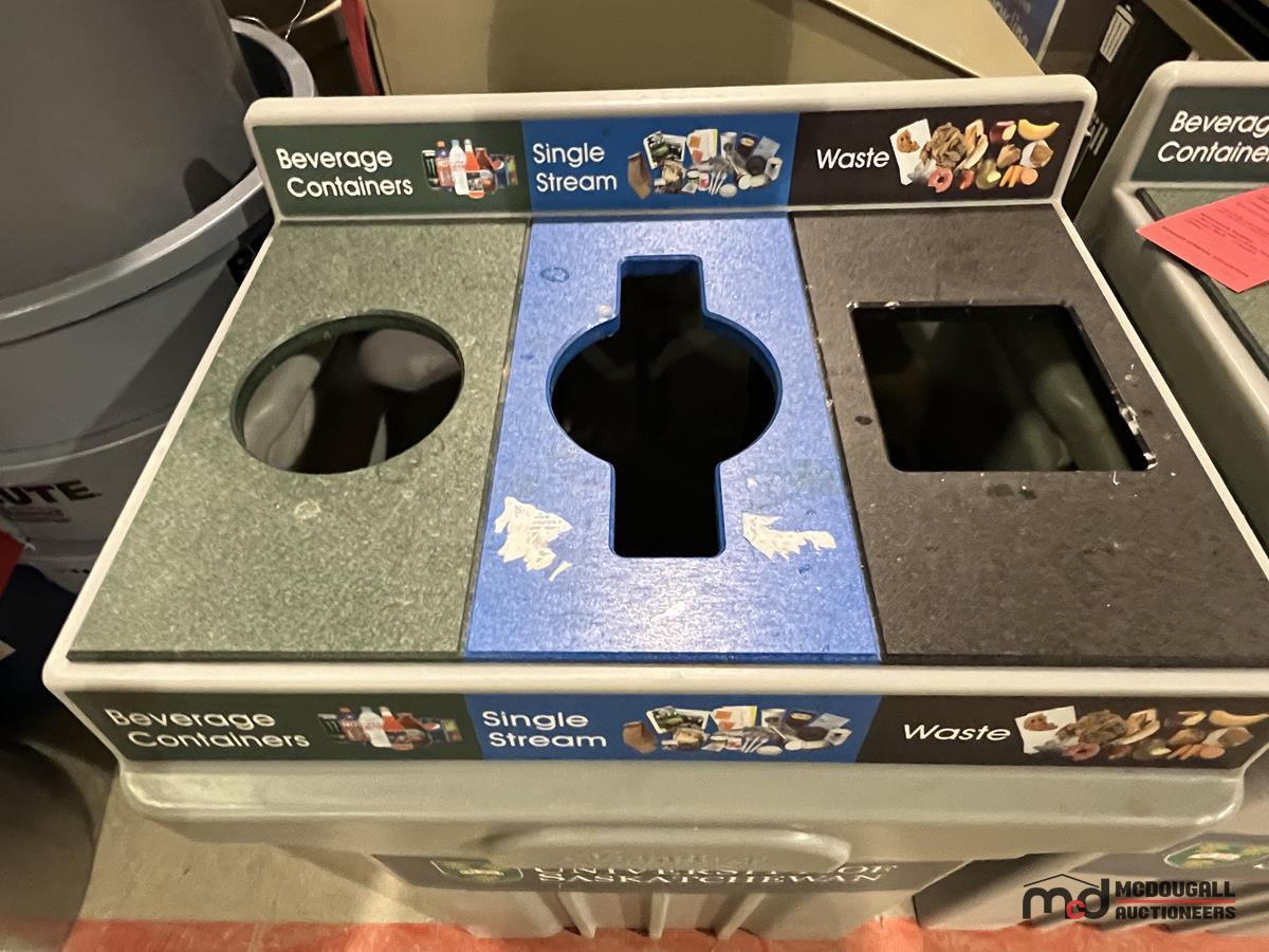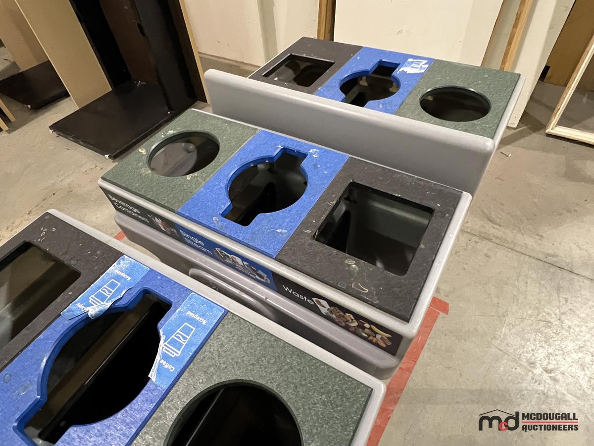 (6) Grey Plastic 3-Compartment Disposal Bins