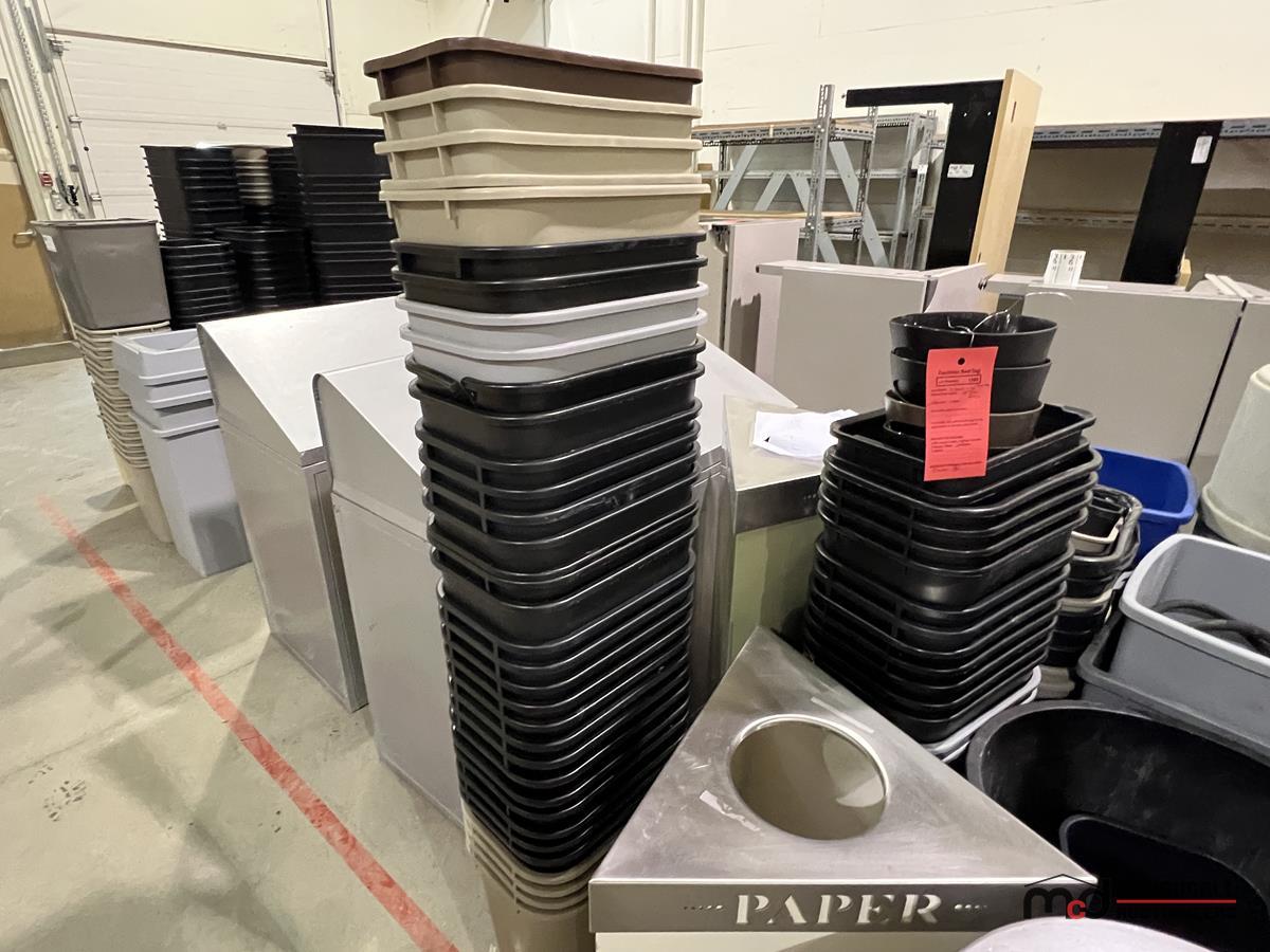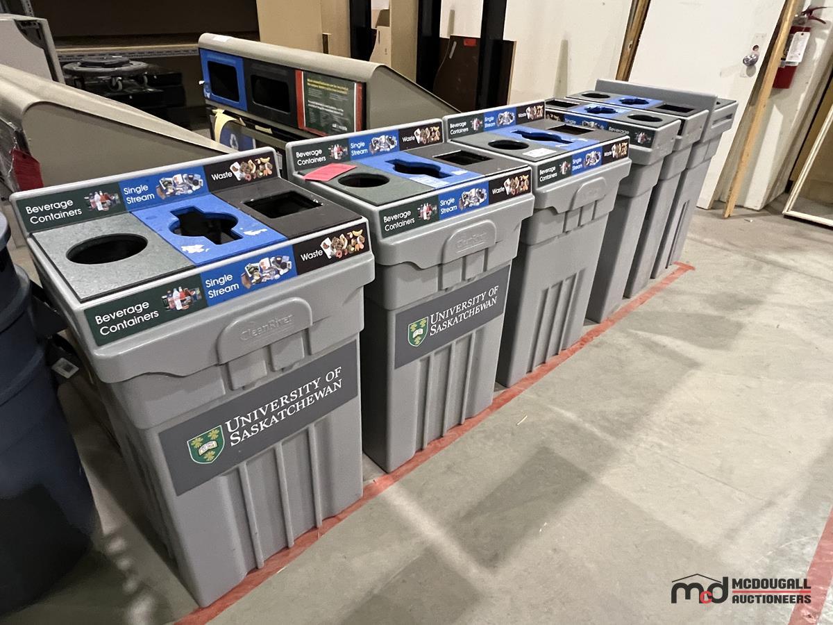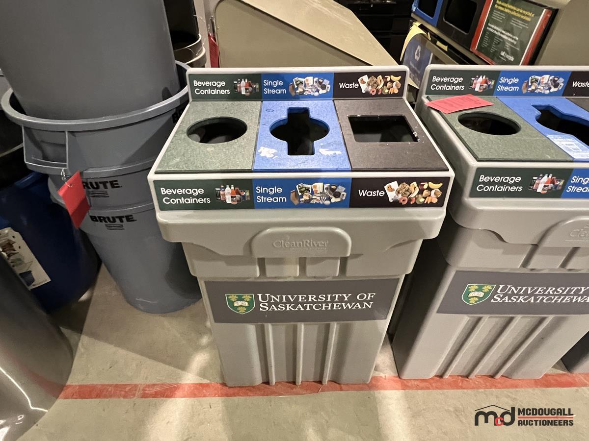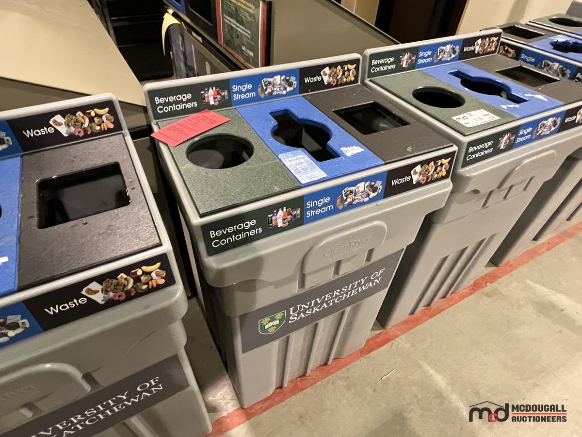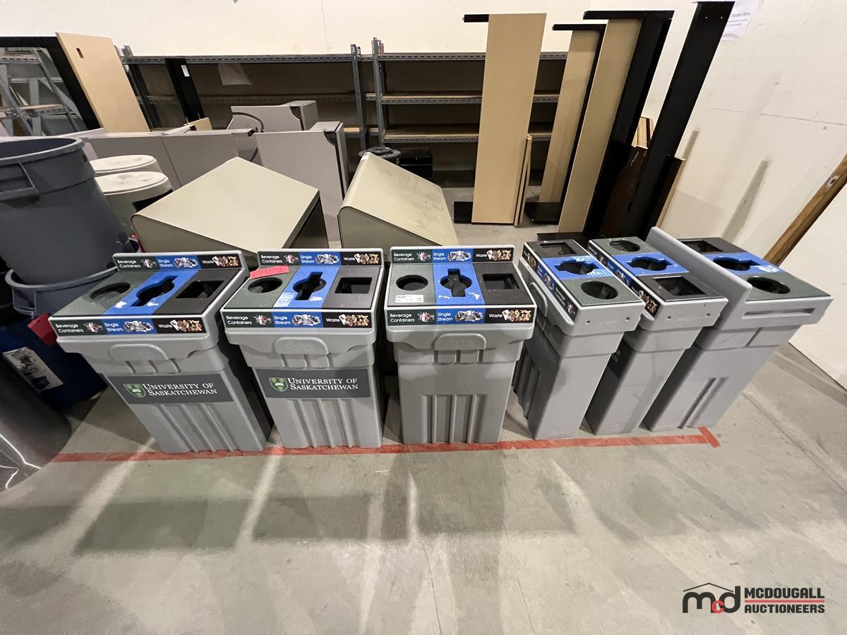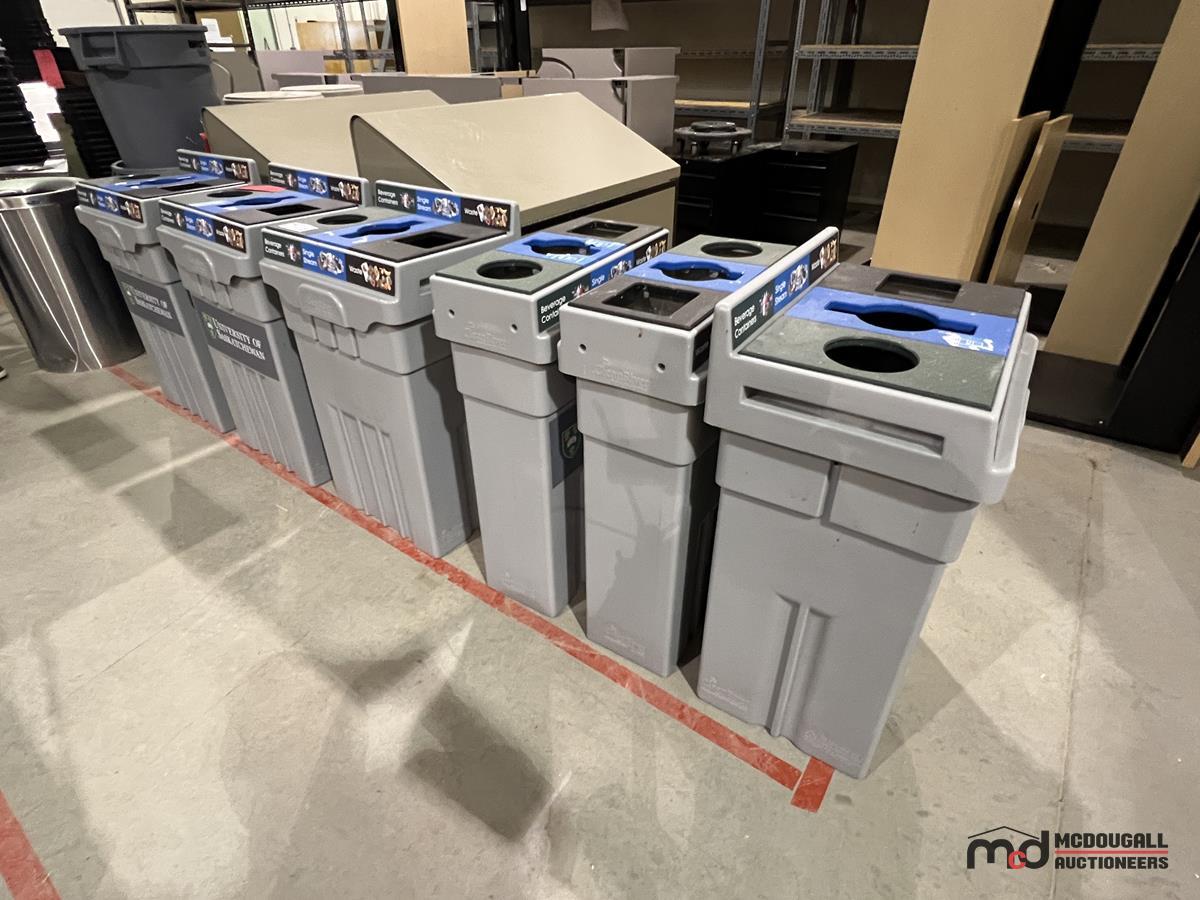 (6) Grey Plastic 3-Compartment Disposal Bins